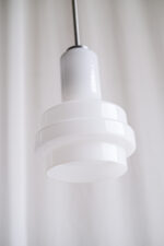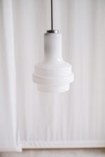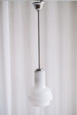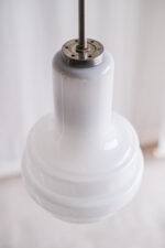 Skleněný lustr z opálového skla zajímavého kaskádovitého tvaru působí velmi elegantně.