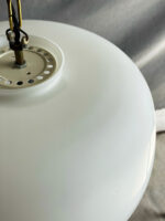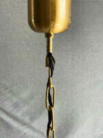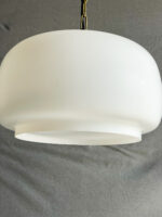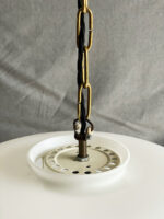 Velký lustr z matného opálového skla na zlatém řetězu.