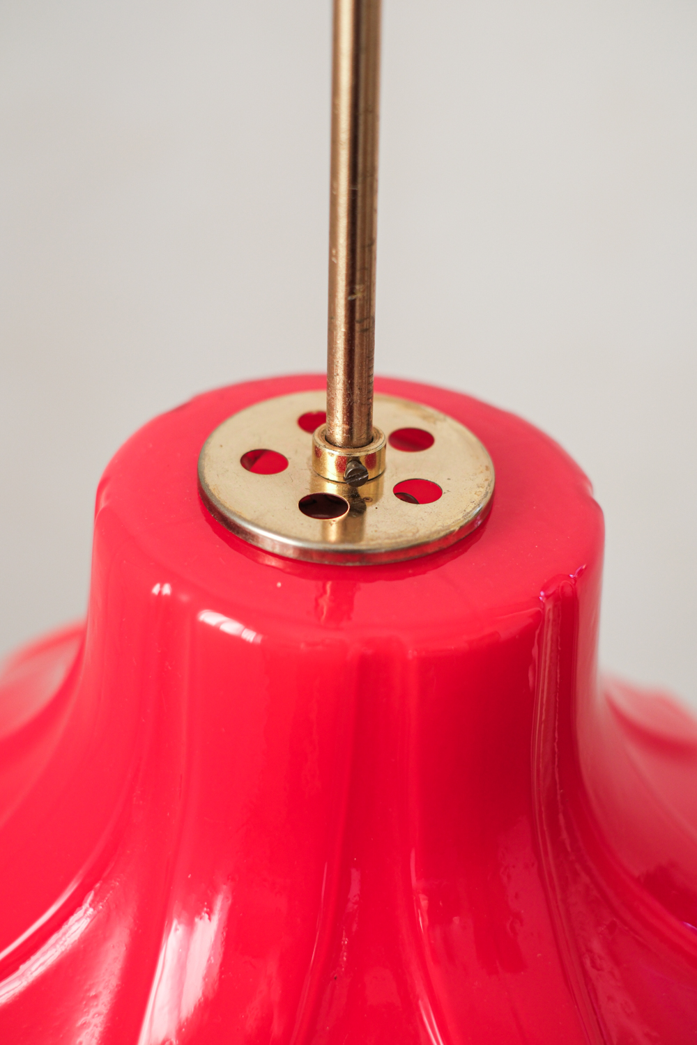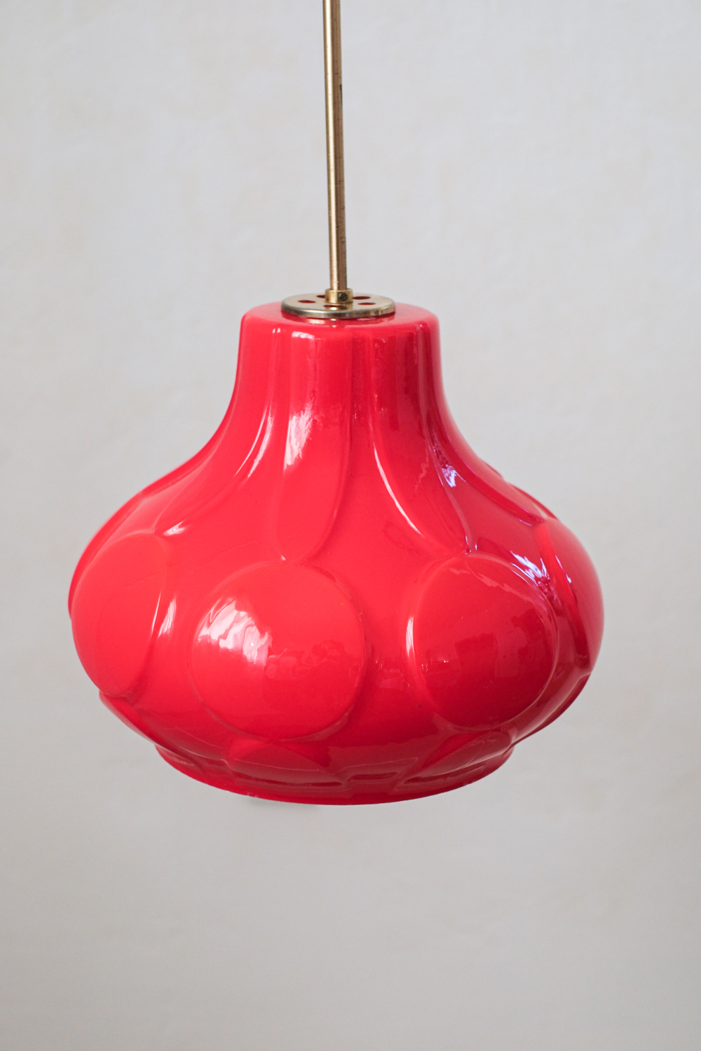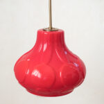 Krásný skleněný lustr v mimořádné červené barvě, který zaujme na první pohled. Zajímavý je nejen barvou, ale i profilováním.