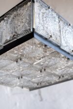 Nevšední lustr ve tvaru kostky pocházející ze 70.let byl vyrobený ve sklárnách Kamenický Šenov, podle návrhu Jaroslava Bejvlta st..