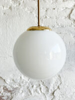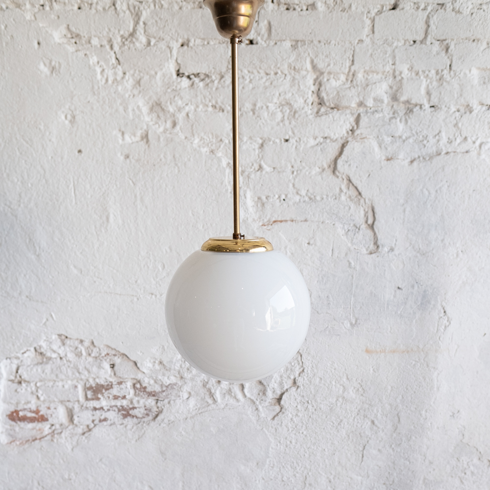 Jednoduché, minimalistické světlo v kombinaci opálového skla a zlatého kovu. Tento typ světla je velmi neutrální a hodí se téměř kamkoliv. Osobně je máme rádi třeba na chodbách.