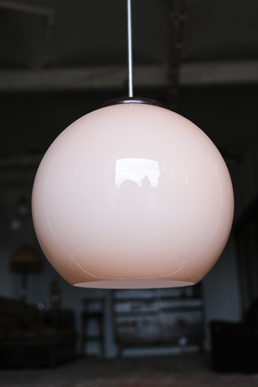 Lustr s kulatým stínidlem z opálového skla v jemně narůžovělém odstínu. Právě barva je jeho hlavní předností – není čistě bílá, ale má teplejší, až narůžovělý, který v interiéru působí příjemně a klidně. Jednoduchý tvar nechává vyniknout materiál i světlo samotné. Po rozsvícení vytváří měkké, rovnoměrně rozptýlené světlo bez ostrých stínů. Ideální pro ty, kteří se bojí výrazných barev, ale něco jemného pro zvýraznění by sei do bytu pustili.