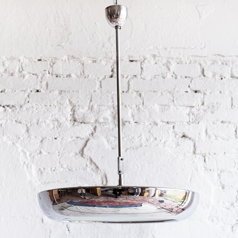 Ikonický lustr „ufo“ od výrobce Napako pochází z období funkcionalismu, 30. léta. Byl zhotoven dle návrhu Josefa Hůrky, který navrhl za svou kariéru několik ikonických svítidel.