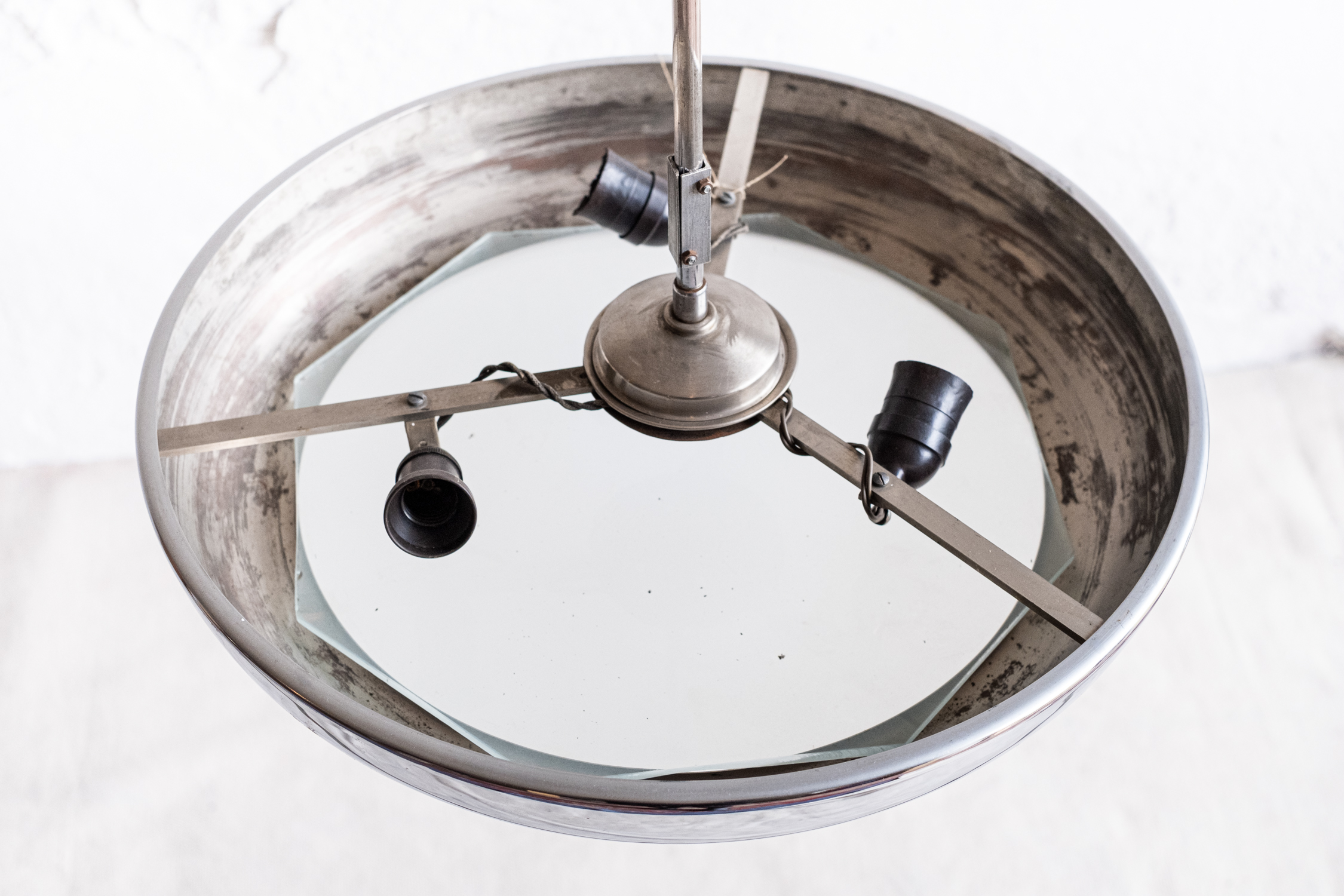 Stav: funkční, elektroinstalace původní. Zachovalý původní stav, chrom v dobrém stavu. Sklo není originál (viz foto).