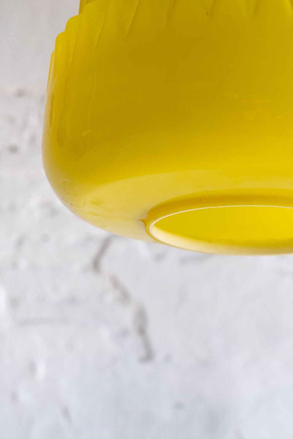 Stínidlo je vyrobeno z opálového skla v lesklé výrazné žluté barvě. Lustr pochází od návrháře Štěpána Tabery, který pracoval pro podnik OPP Jihlava. Čistým tvarem i výraznou barvou se bude krásně hodit jak do moderního interiéru tak do retro stylu. Rozhodně s ebude jednat o výrazný prvek, který upoutá pozornost.