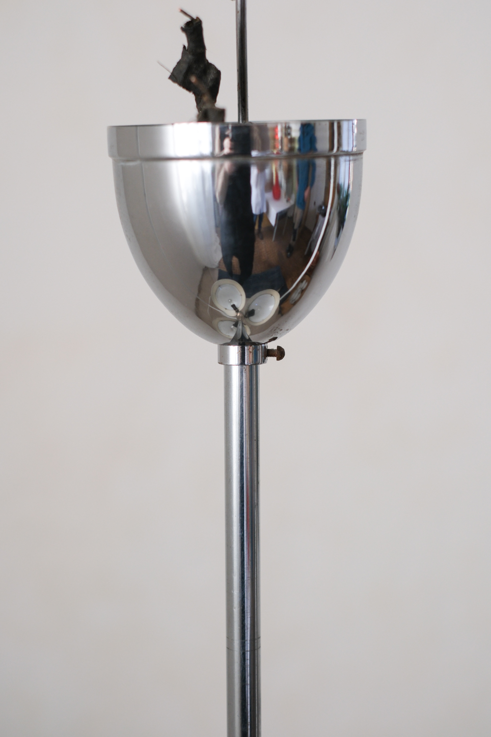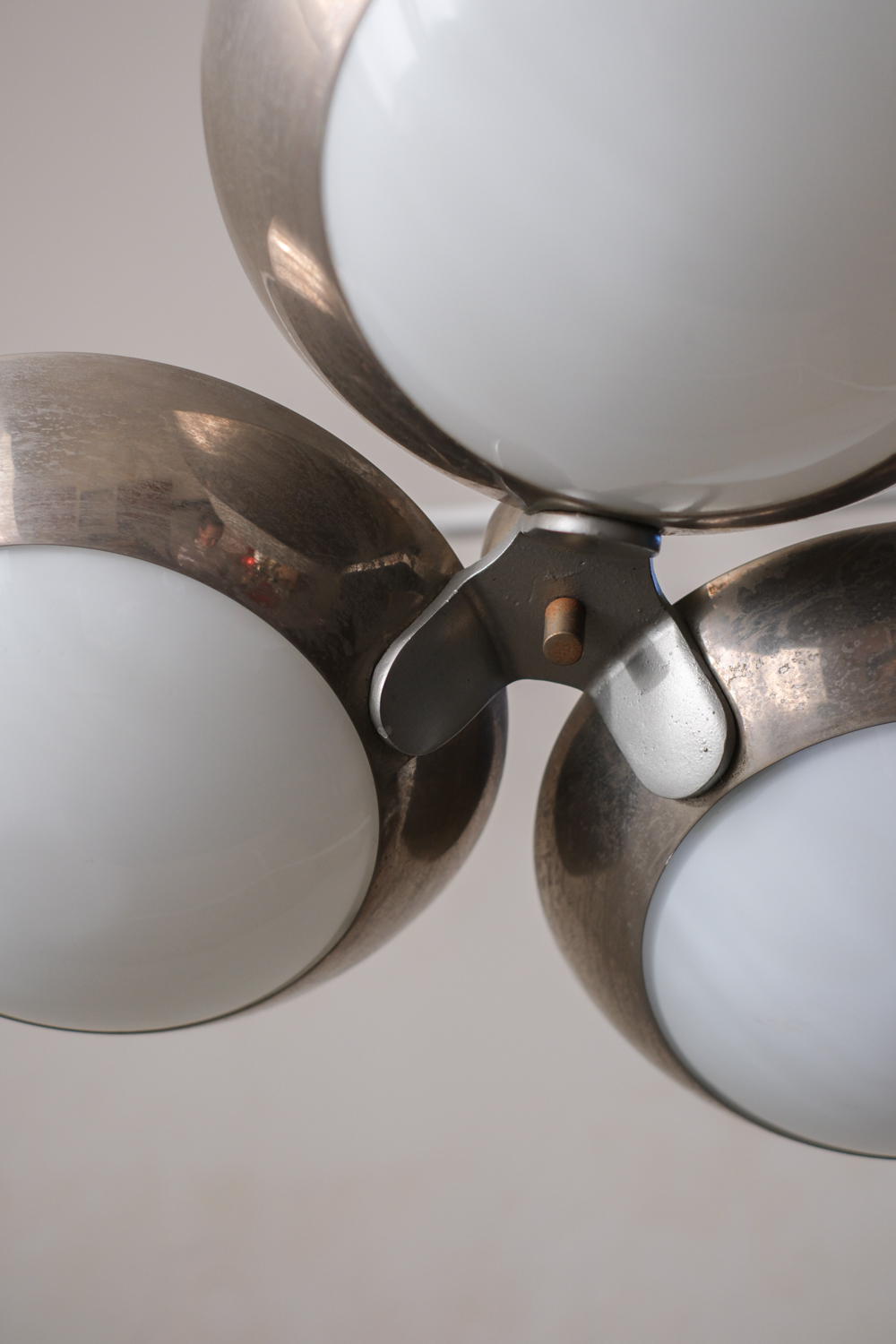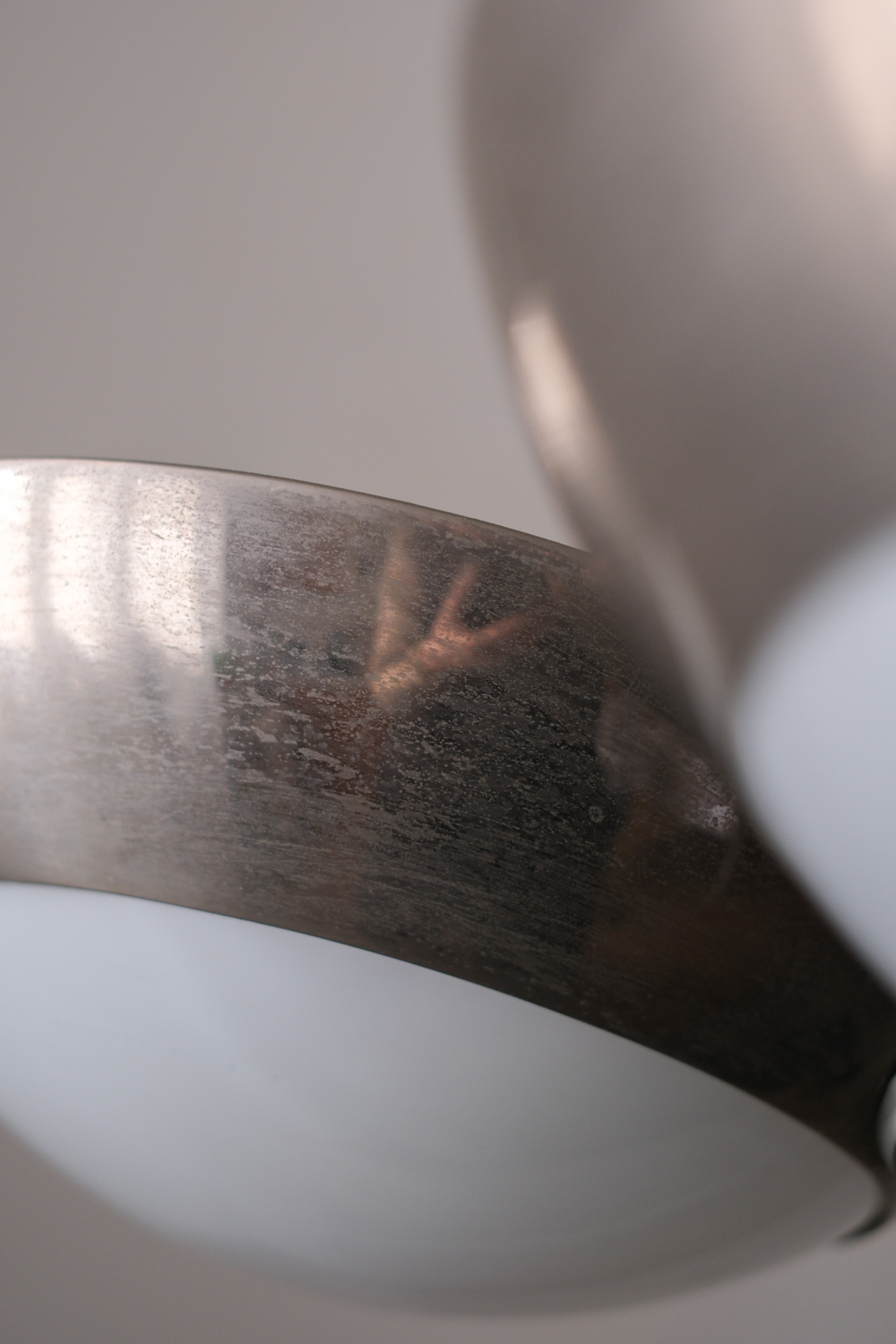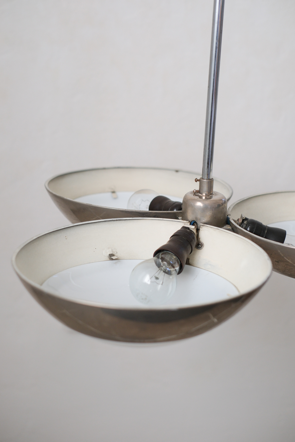 Málo vídaný chromový lustr ze 40. let minulého století od značky Zukov.