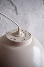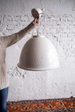Světlo ve tvaru zvonu v lesklé bílé a stříbrné barvě má ráz industriálního světla, ale v méně mohutné podobě než je běžné u starých světel tohoto typu. Vnitřek světla je zbroušen do tvaru včelých pláství. Na svůj rozměr překvapí lehkostí.