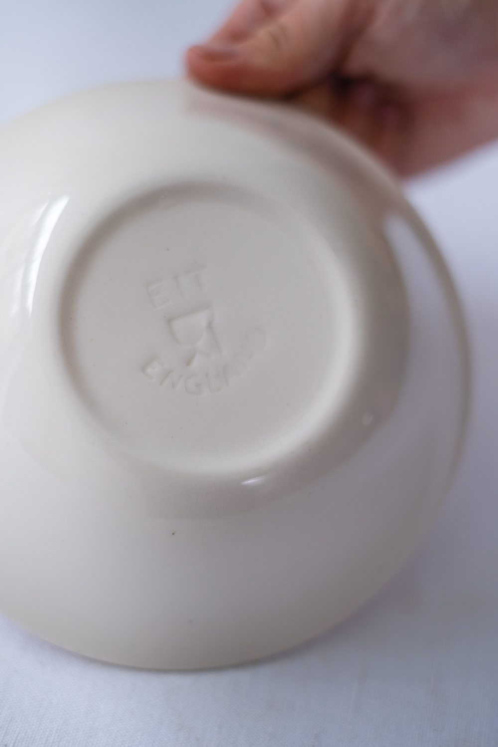 Ručně malovaná miska oblíbeného anglického porcelánu je z tlustého střepu v barvě slonové kosti. Jak už bývá u tohoto druhu porcelánu zvykem, i zde se nachází motiv anglického venkova koně na poli.