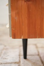 Charakteristický design s vysokým čelem a subtilní nohou je nejen esteticky vyvážený, ale i praktický – ideální jako doplněk k posteli z téže sestavy (k dispozici máme ještě skříńku), případně jako samostatný solitér s jemným retro nádechem.