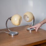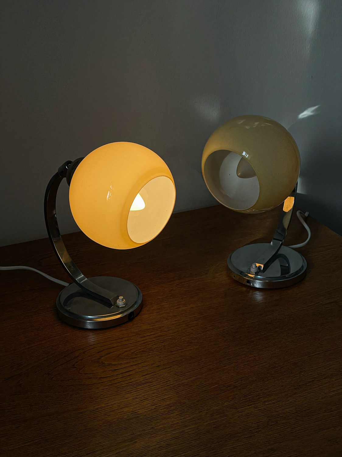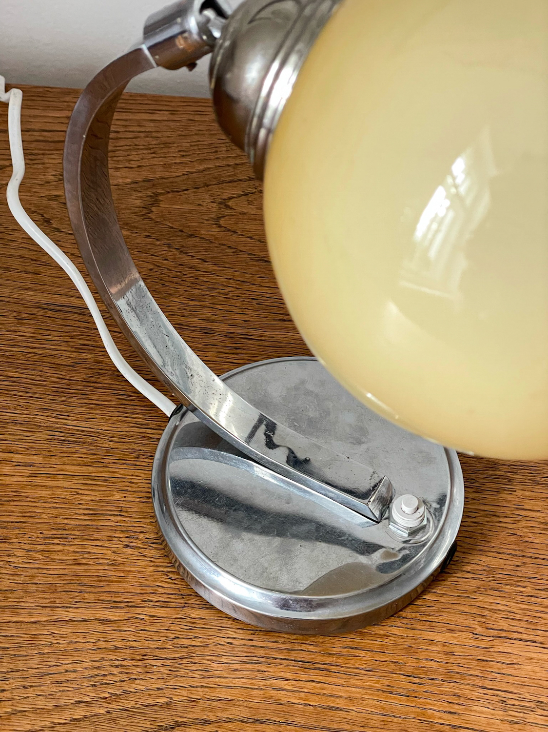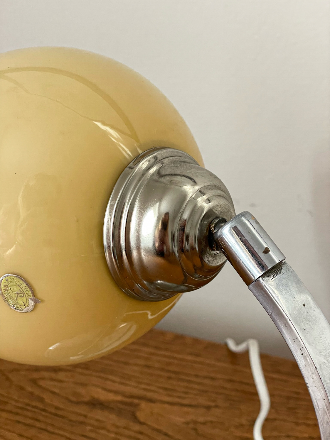 Párové stolní art deco lampičky s naklápěcím stínidlem ve smetanové barvě. Lampička je určena především na noční stolek.