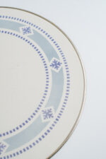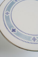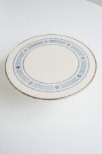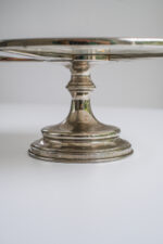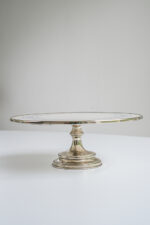 Secesní podnos na noze podle návrhu Joseph Maria Olbrich pro WMF je vhodný na dort nebo cukroví. Kombinace profilované nohy z poniklované mosazi s porcelánovým podnosem působí velmi elegantně. Podnos pochází z roku 1900.