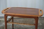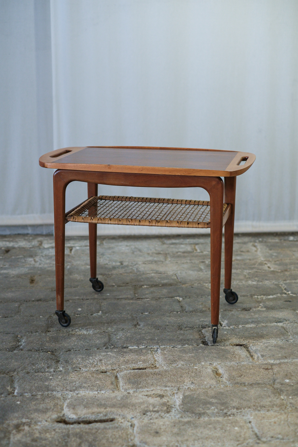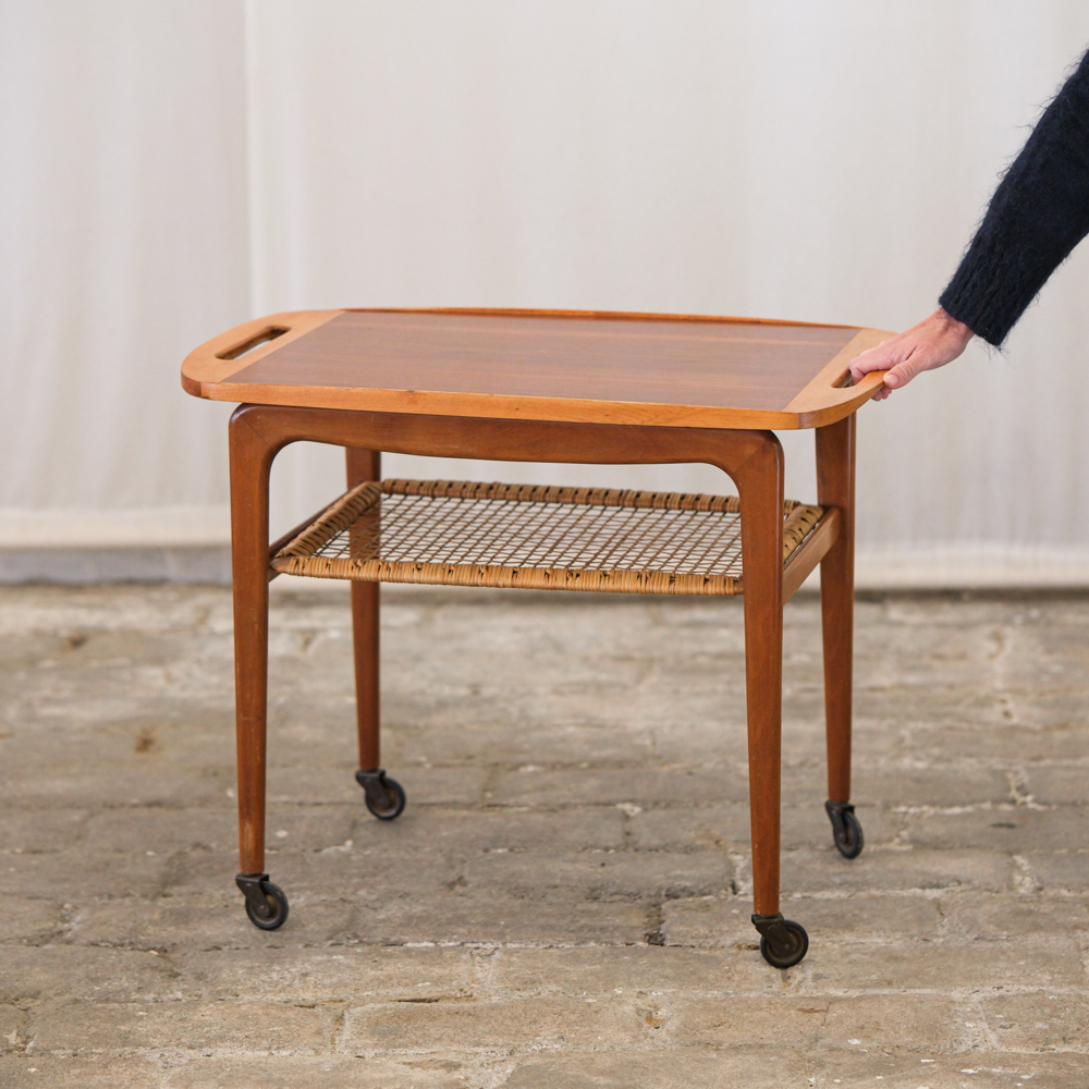 Elegantní servírovací stolek s organicky tvarovanou horní deskou a jemně zaoblenými liniemi, které odkazují na vliv skandinávského designu. Ideální jako pojízdný bar, čajový stolek nebo stylový doplněk do obývacího pokoje.