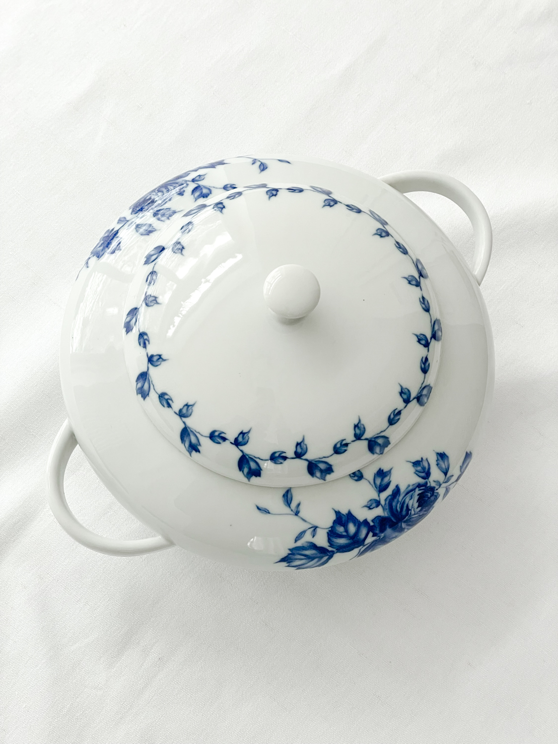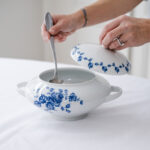 Menší polévková mísa neobvyklého tvaru v oblíbeném dekoru modrých květin.