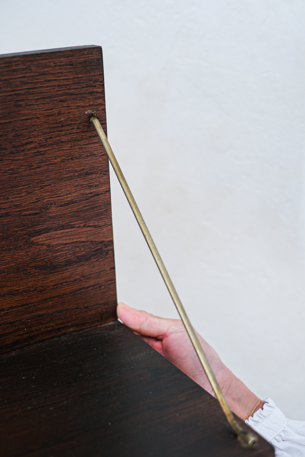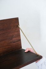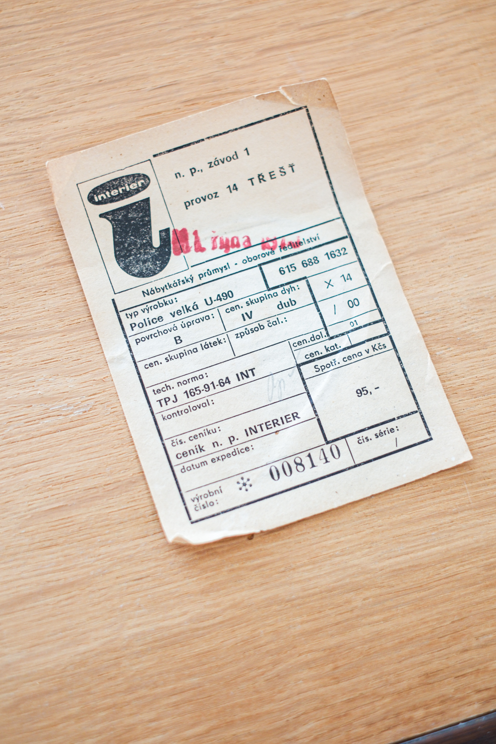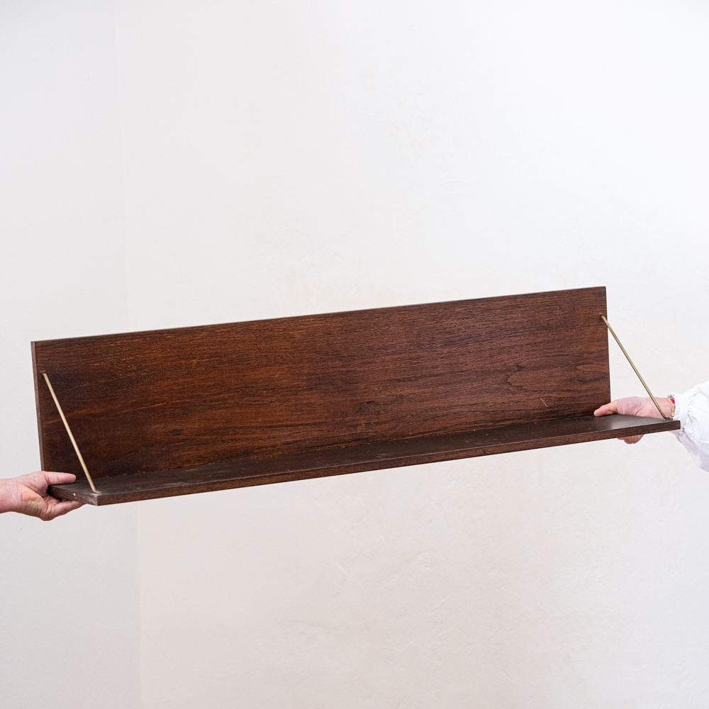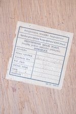 Jednoduchá linie, pevná konstrukce a tichá elegance dobového designu – police U-490 z produkce národního podniku Interiér, závod Třešť, nese vše, co si spojujeme s kvalitní výrobou 70. a 80. let v Československu. Vyrobena z dýhované desky v úpravě dub a zavěšená na jemných kovových táhlech, představuje funkční řešení s estetickou pokorou.Tato police byla součástí typizovaných nábytkových souborů určených pro domácnosti, kanceláře i veřejné prostory.