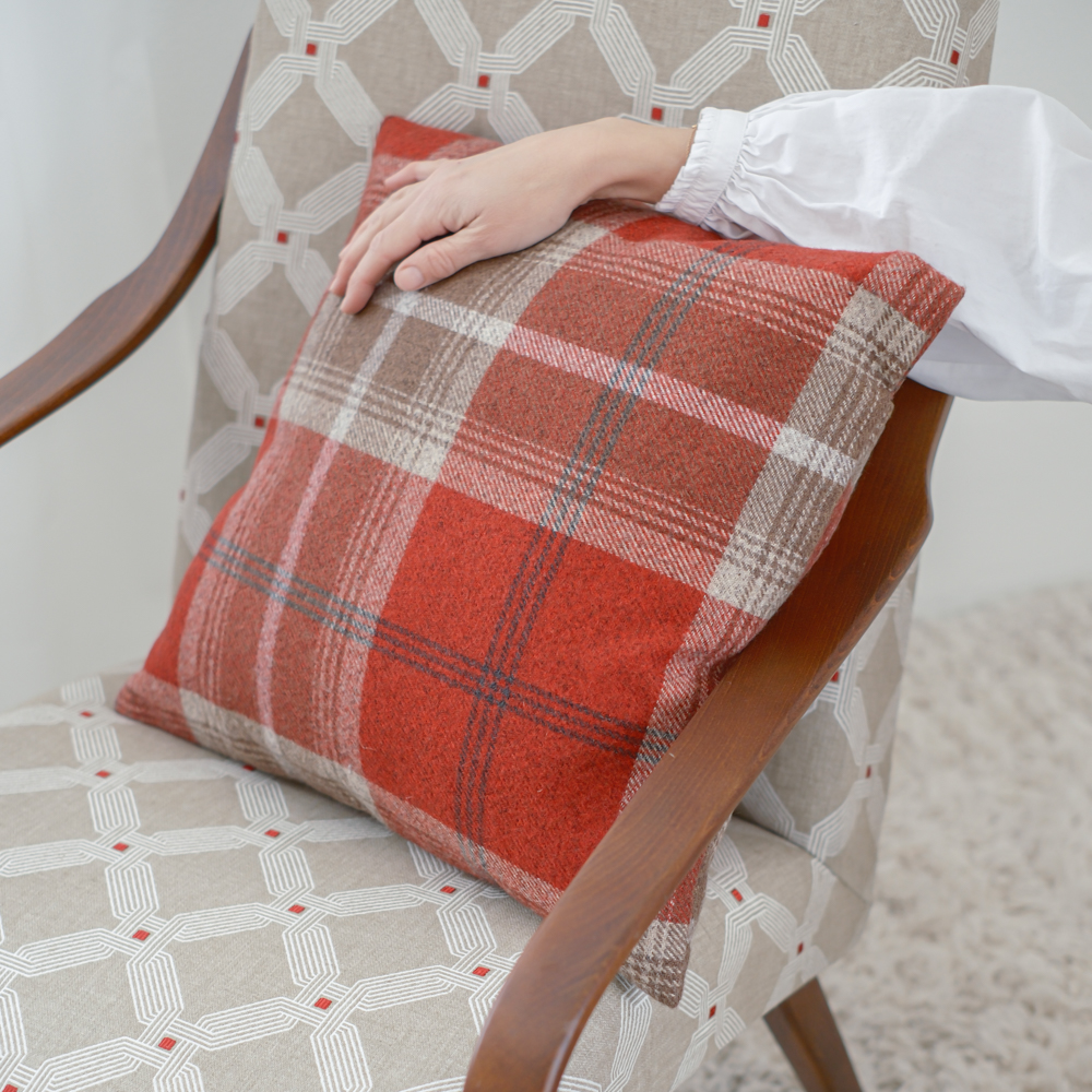 Dekorační polštář v módní bordó barvě, který se díky vícebarevnému vzoru bude snadno kombinovat s mnoha barvami.