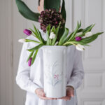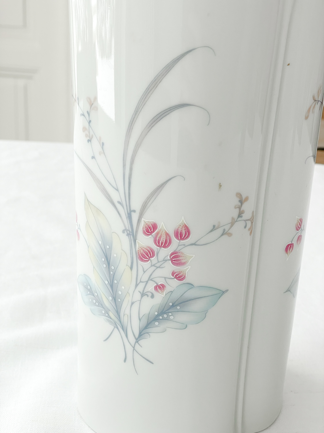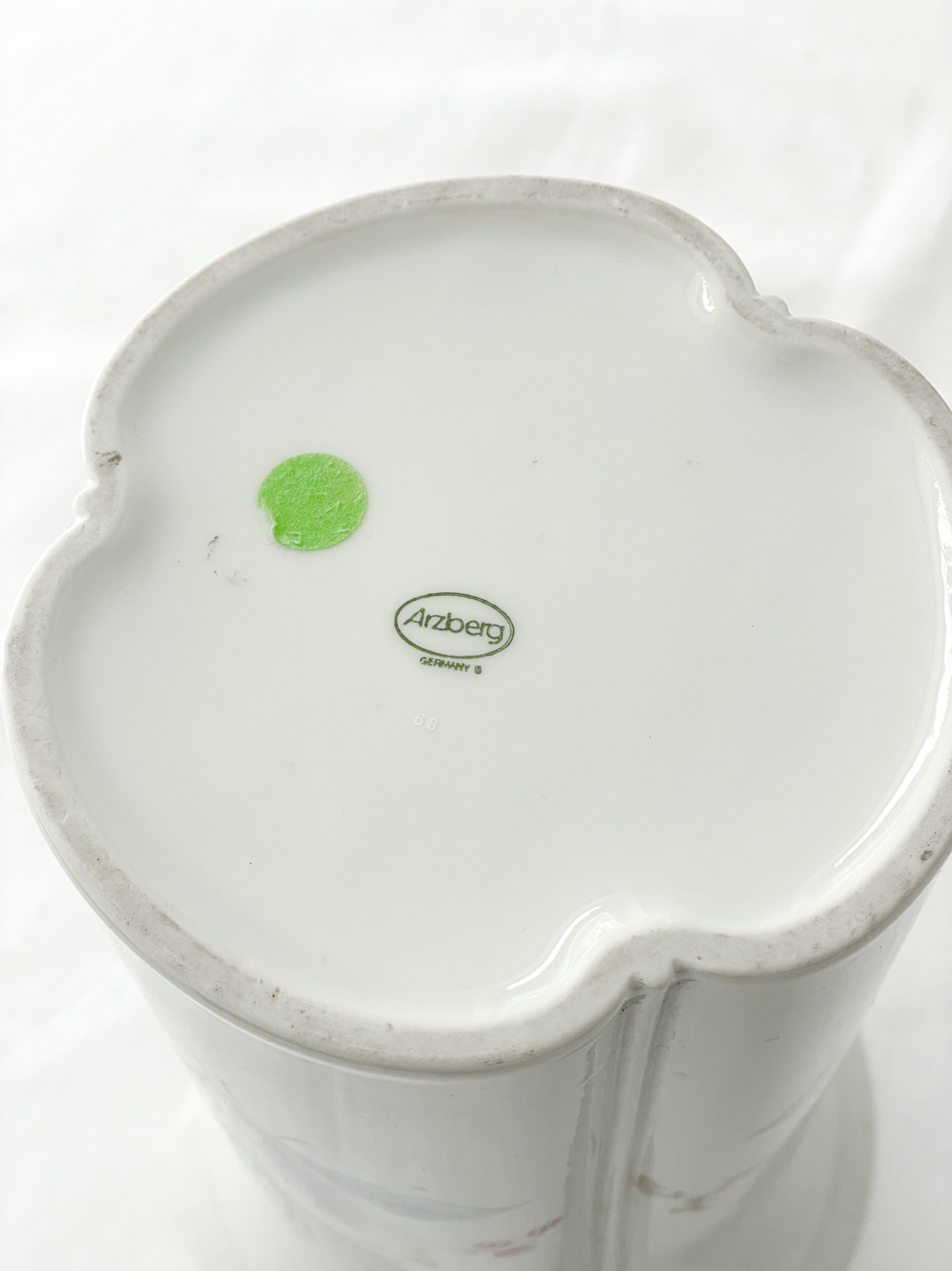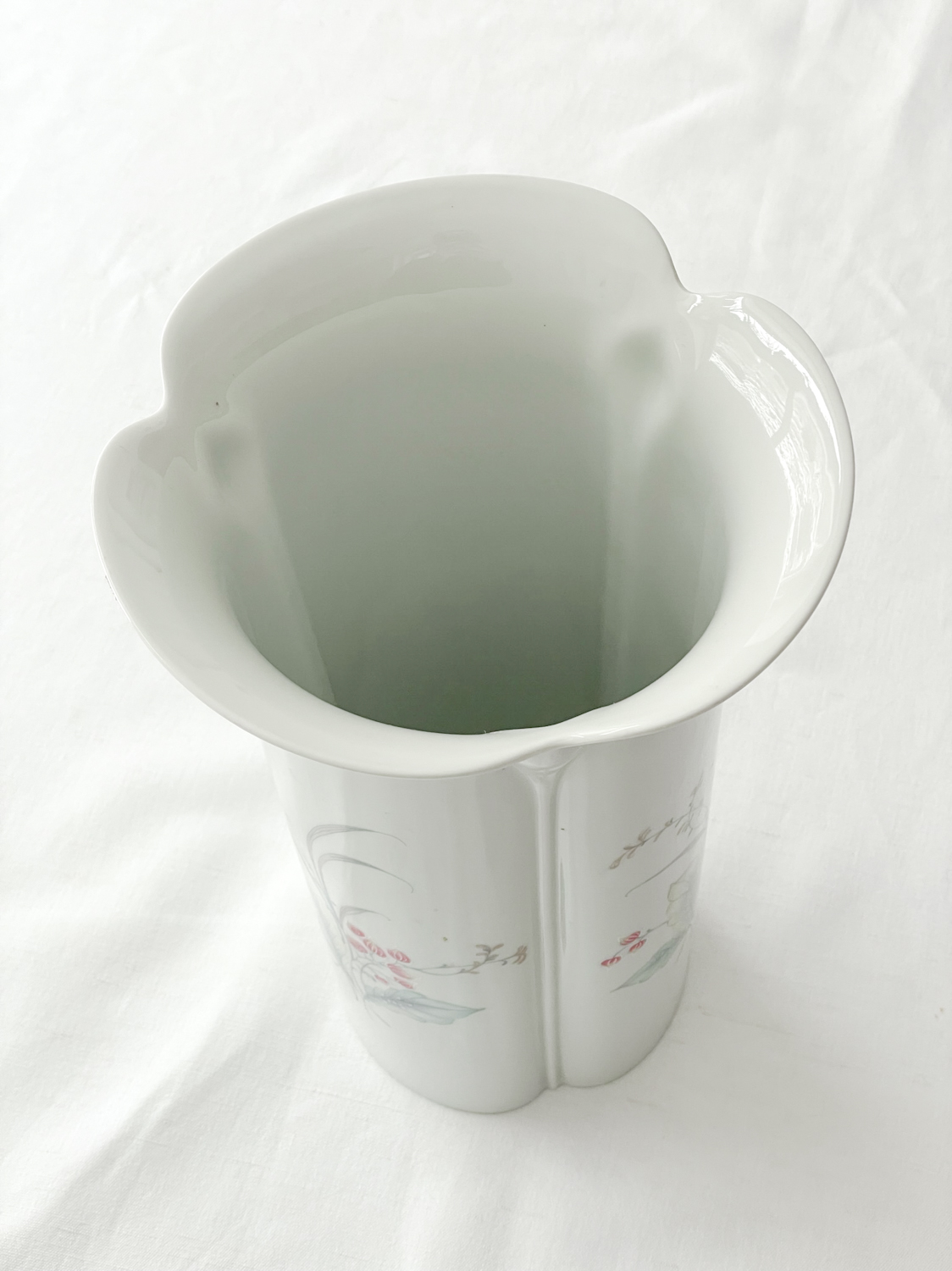 Velká váza s něžnou kresbou ve světlých barvách, která působí až japonským dojmem. Při pohledu svrchu působí jak otevřený kalich květu. Váza pochází z dílny Arzberg, německé porcelánky vyrábějící své produkty především v designové tradici Bauhaus – v souladu funkce a formy.