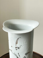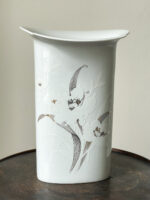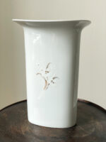 Vysoká oválná váza od německé porcelánky Arzberg je zakončena jakoby ohnutými plátky květin. Zajímavý je dekor květiny, který je v provedení matné bílé a lesklé zlaté barvy. Stejnou vázu máme k dispozici i menší.