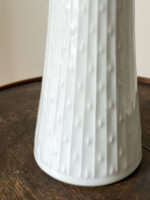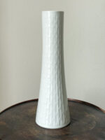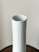 Minimalistická úzká váza, kterou zdobí pouze plastický vzor v pruzích padajících kapek. Vhodná na vyšší jednoduchou květinu nebo naopak kontrasně mohutnější květy, které půjdou do stran.