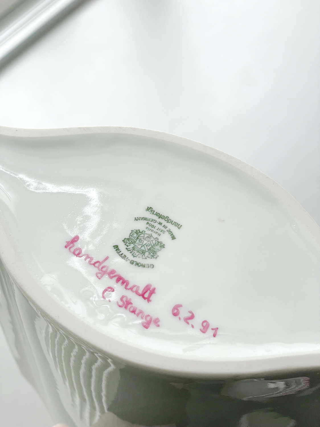 Váza od vysoce elegantní porcelánky Tettau, jejíž kořeny sahají do roku 1794. Od začátku 19. století je tato značka pokládána za součást slavnostního stolování s nejvyšší kvalitou. Označuje se za porcelán královský, klasický, vznešený a elegantní. Od roku 1957 patří značka Tettau do skupiny Seltmann Weiden, která je založena na tradicích a inovaci.