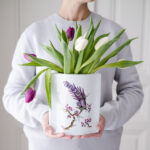 Váza má moderní tvar a její ručně malovaný dekor je neobvyklý jak motivem, tak barevností.