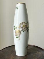 Porcelánová váza od německé porcelánky Thomas, který je značkou ze skupiny Rosenthal. Jednoduchý moderní tvar s detailně propracovanou kresbou pivoněk ve zlaté barvě. V tomto provedení máme několik velikostí váz, tak je možno hezky kombinovat.