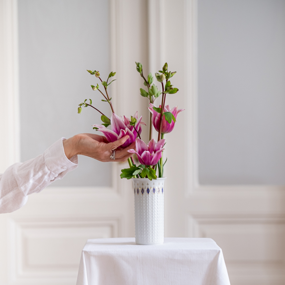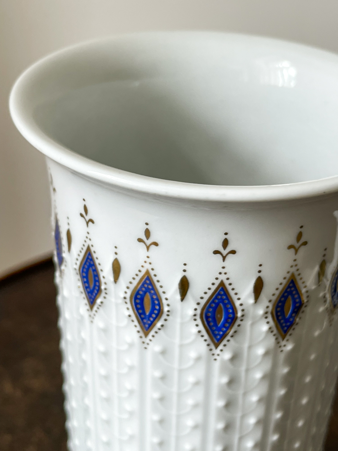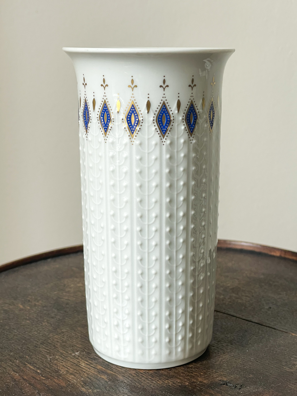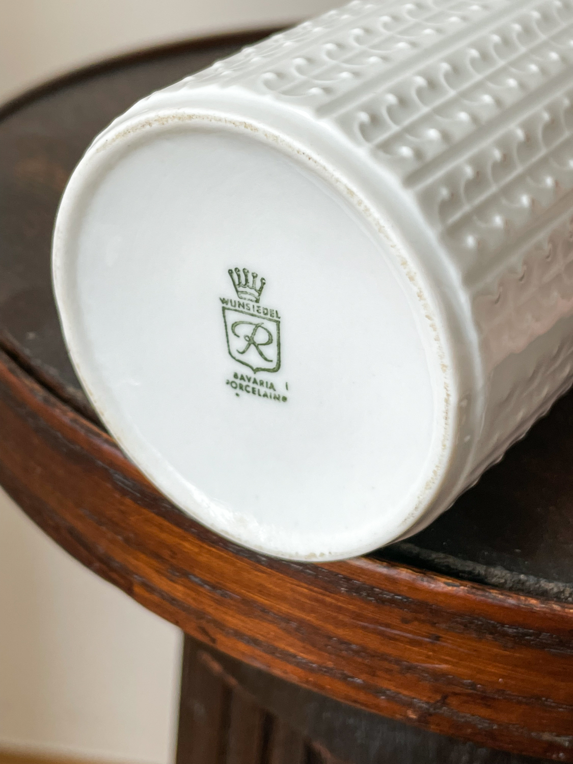 Menší porcelánová váza má nejen zajímavý hranatý tvar, ale i plastické geometrické zdobení. Pochází z německé porcelánky Wunsiedel a bude ideální pro ty, kteří si nechtějí lámat hlavu se složitým aranžováním a nákupem velkých kytic.