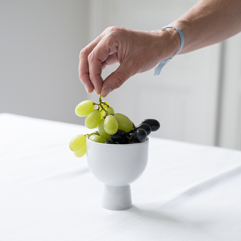 Multifunkční porcelánový kalíšek vyroben v Čechách dle návrhu švédské designérky Carin Seth Anderssonové v minimalistickém moderním tvaru, lze využít jako miska na oříšky nebo na malý dezert. Pokud jej obrátíte, lze jej použít i jako svícen.