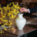 Díky širšímu hrdlu dobře funguje i s volnějším aranžmá, například s větvemi nebo objemnějšími kyticemi.
