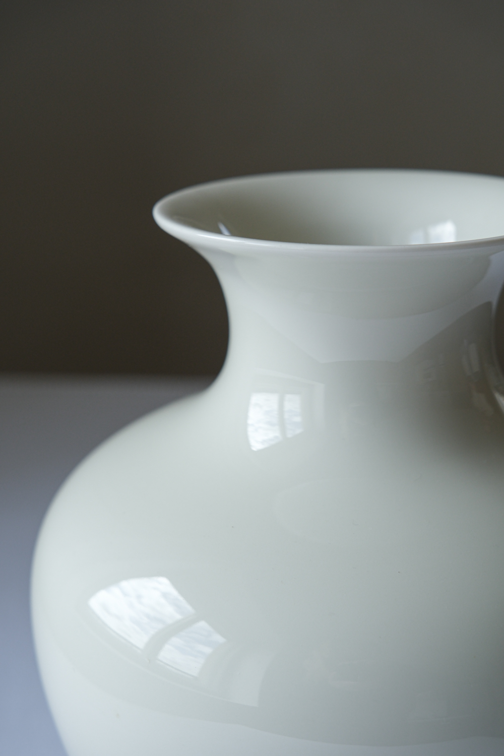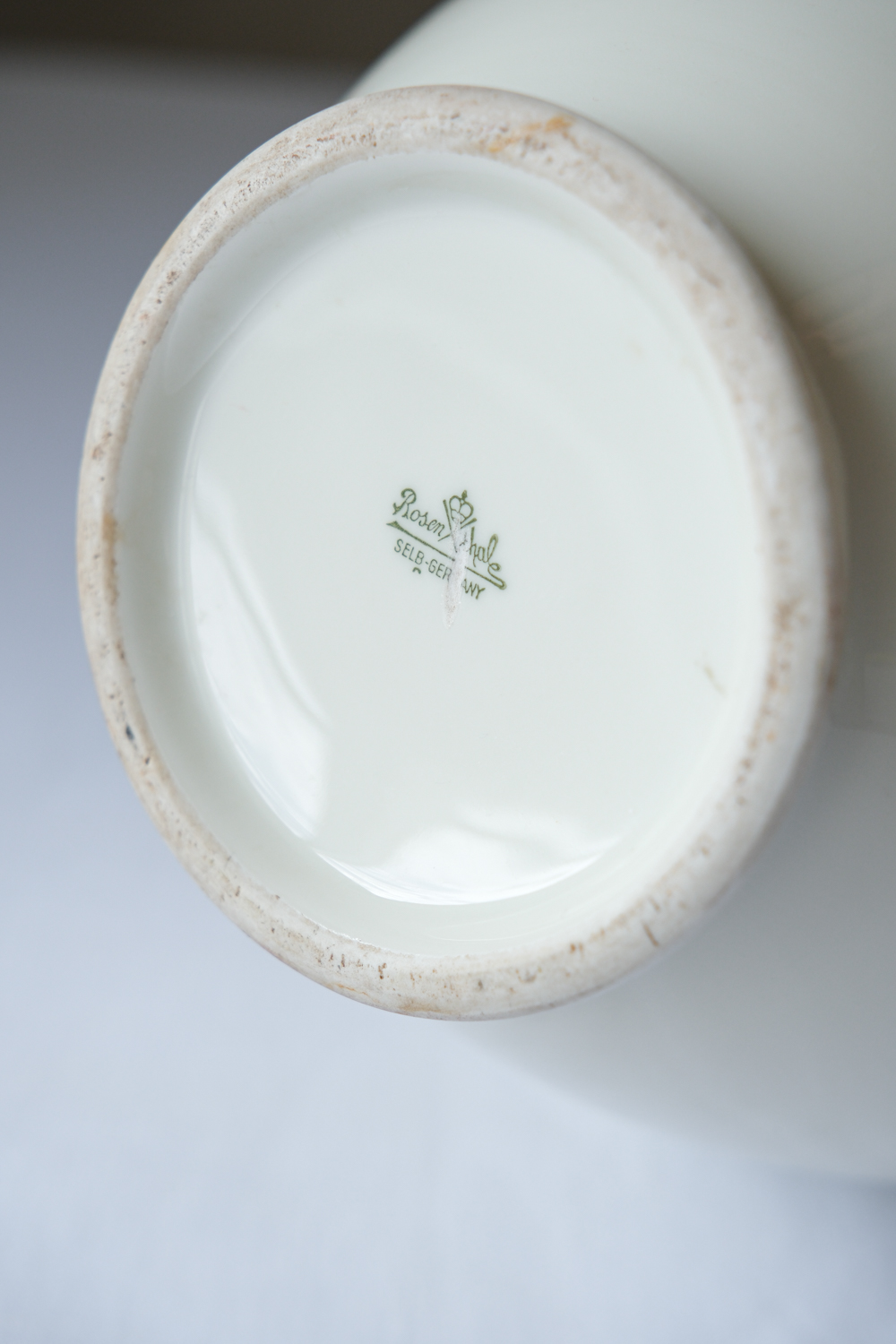 Porcelánová váza z produkce Rosenthal v jemném smetanovém, off-white odstínu. Tvar je plný a zaoblený, s klidnou, vyváženou siluetou, která působí velmi přirozeně.