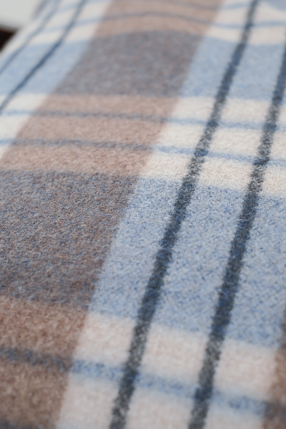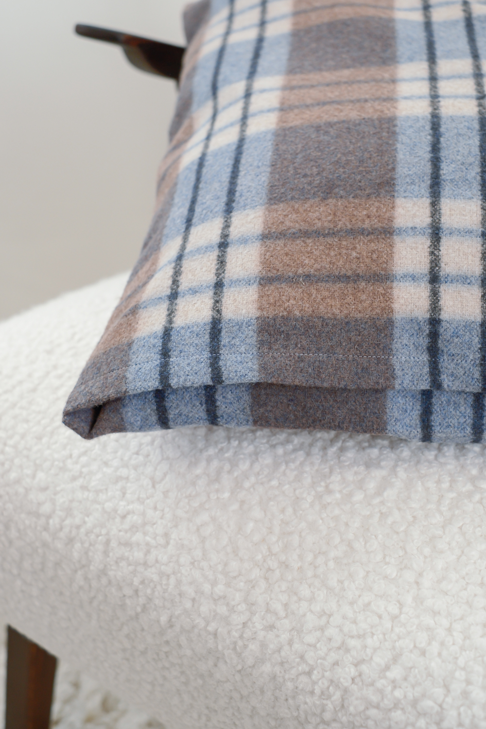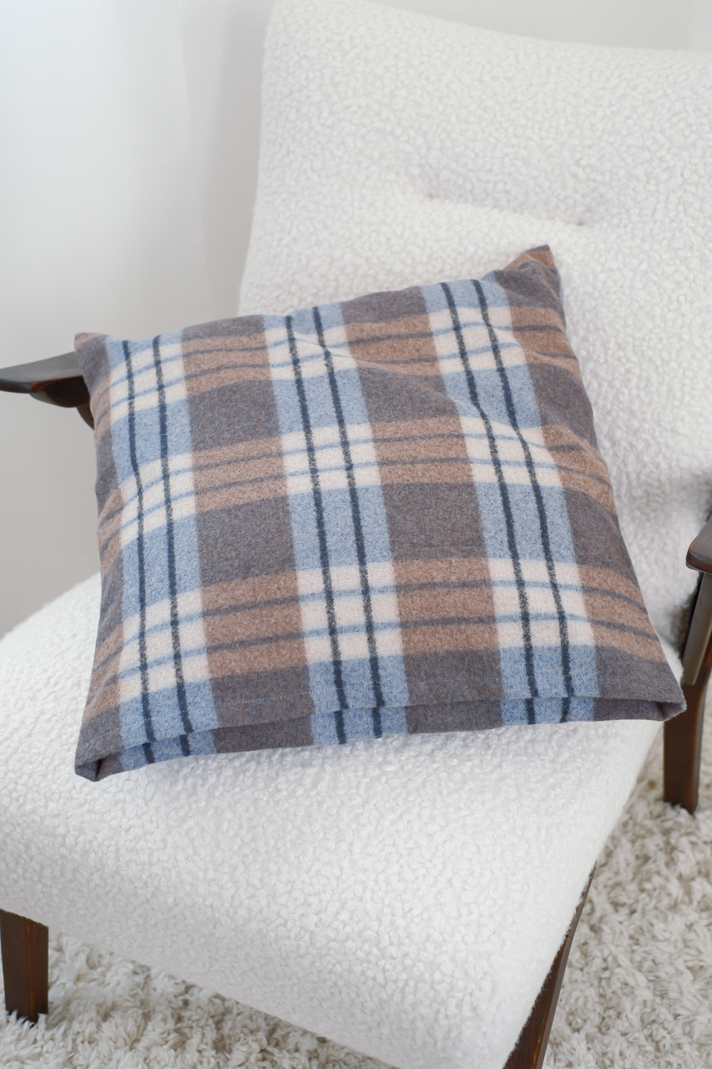 Dekorační povlak na polštář v modro-hnědé barvě, který se díky vícebarevnému vzoru bude snadno kombinovat s mnoha barvami.
