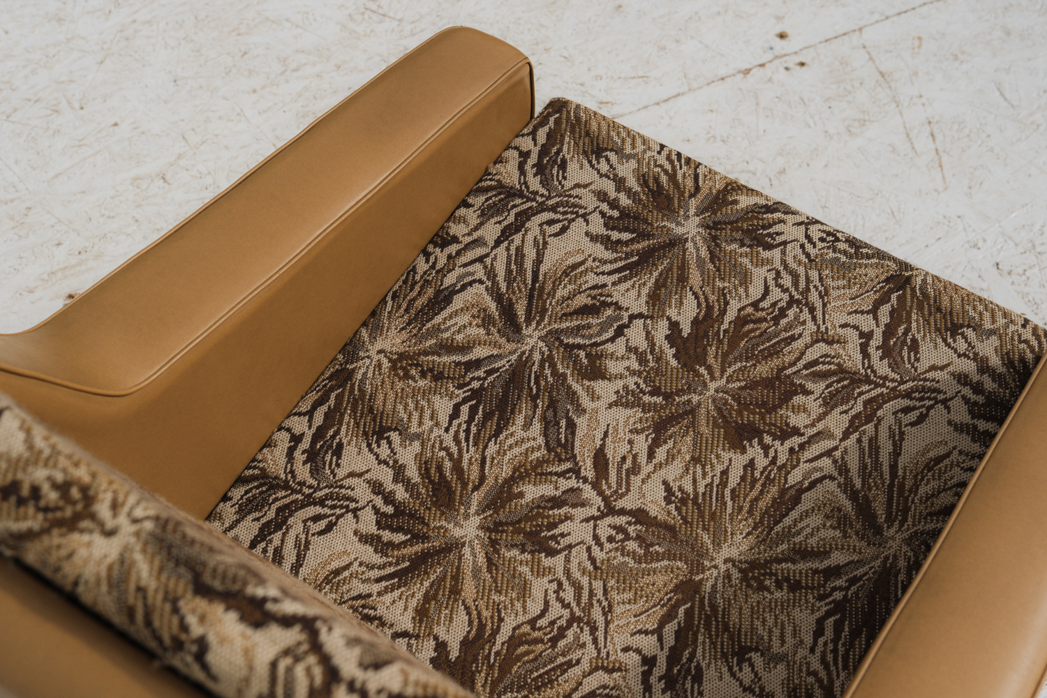 Křeslo ze stejné série jako rozkládací pohovka NAB516 – typický představitel československého designu 60. a 70. let, kde se praktičnost přirozeně propojuje s estetikou.