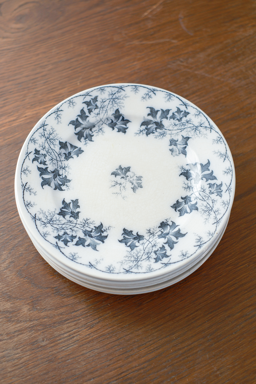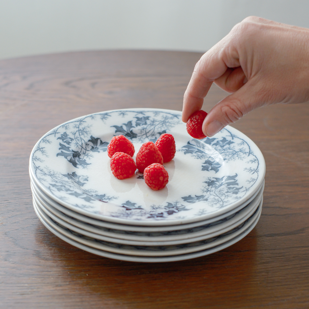 Starožitná sada dezertních talířků od renomované německé společnosit Villeroy & Boch, jejíž historie sahá až do roku 1748, kdy byla založena Françoisem Bochem a Nicolaem Villeroyem. Tato nádherná starožitná sada talířků se vzorem elbe je jak z anglického venkovského sídla.