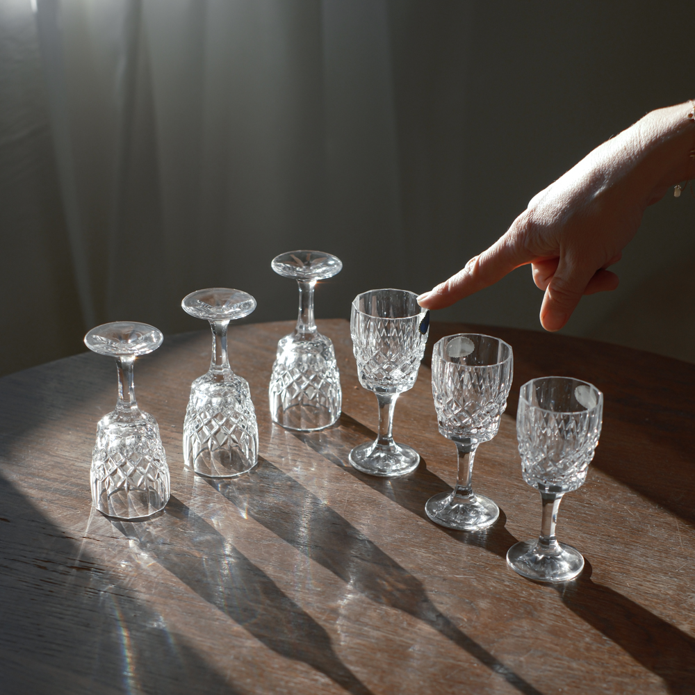 Sada 6 skelnic na likér z litého skla.