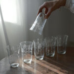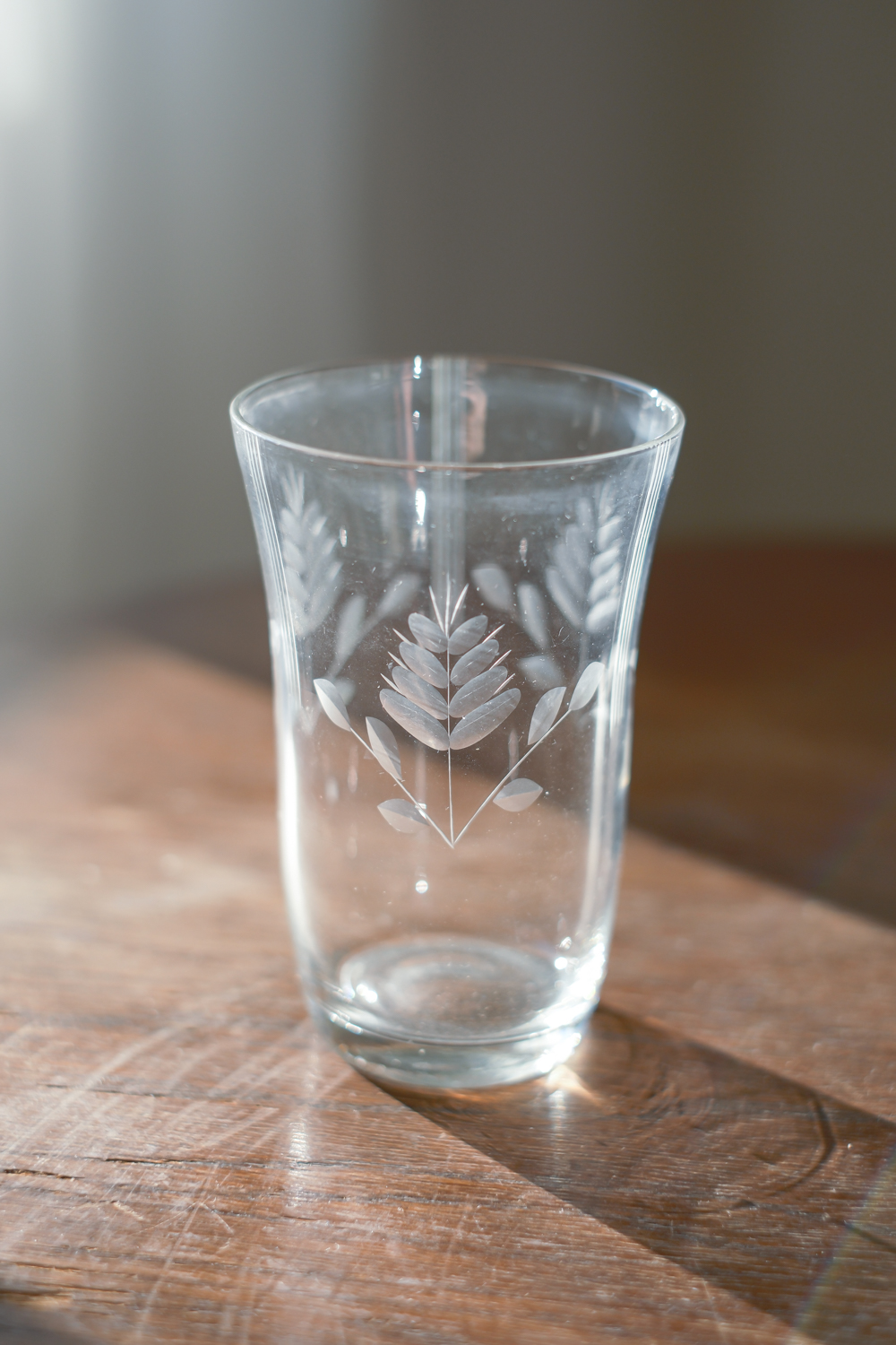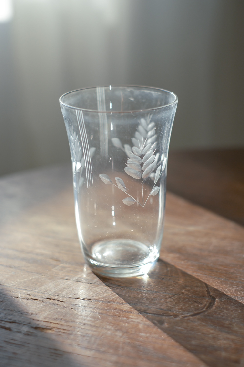 Sada 6 sklenic na vodu s 30. let minulého století s broušeným vzorem sytlizvaných květin.