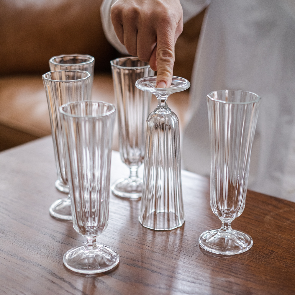 Sada 6 starých litých sklenic lomených do desetihranu.