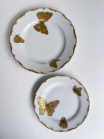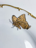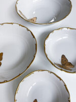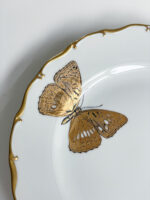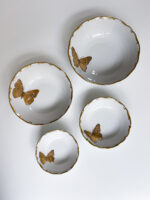 Porcelánová sada mís a servírovacích talířů z porcelánky Moritz Zdekauer, která se nacházela ve Staré Roli. Tento podnik zanikl v roce 2018, proto se s novými produkty této značky již nesetkáte. Mísy jsou bohatě zlaceny s detailně propracovaným obrázkem motýla.