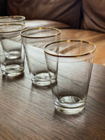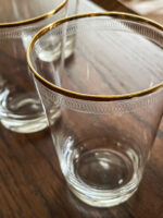 Tenkostěnné sklenice na vodu v příjemné velikosti a tvaru do ruky. Jemné broušené zdobení s výraznou zlatou linkou jim dodává na eleganci.