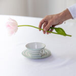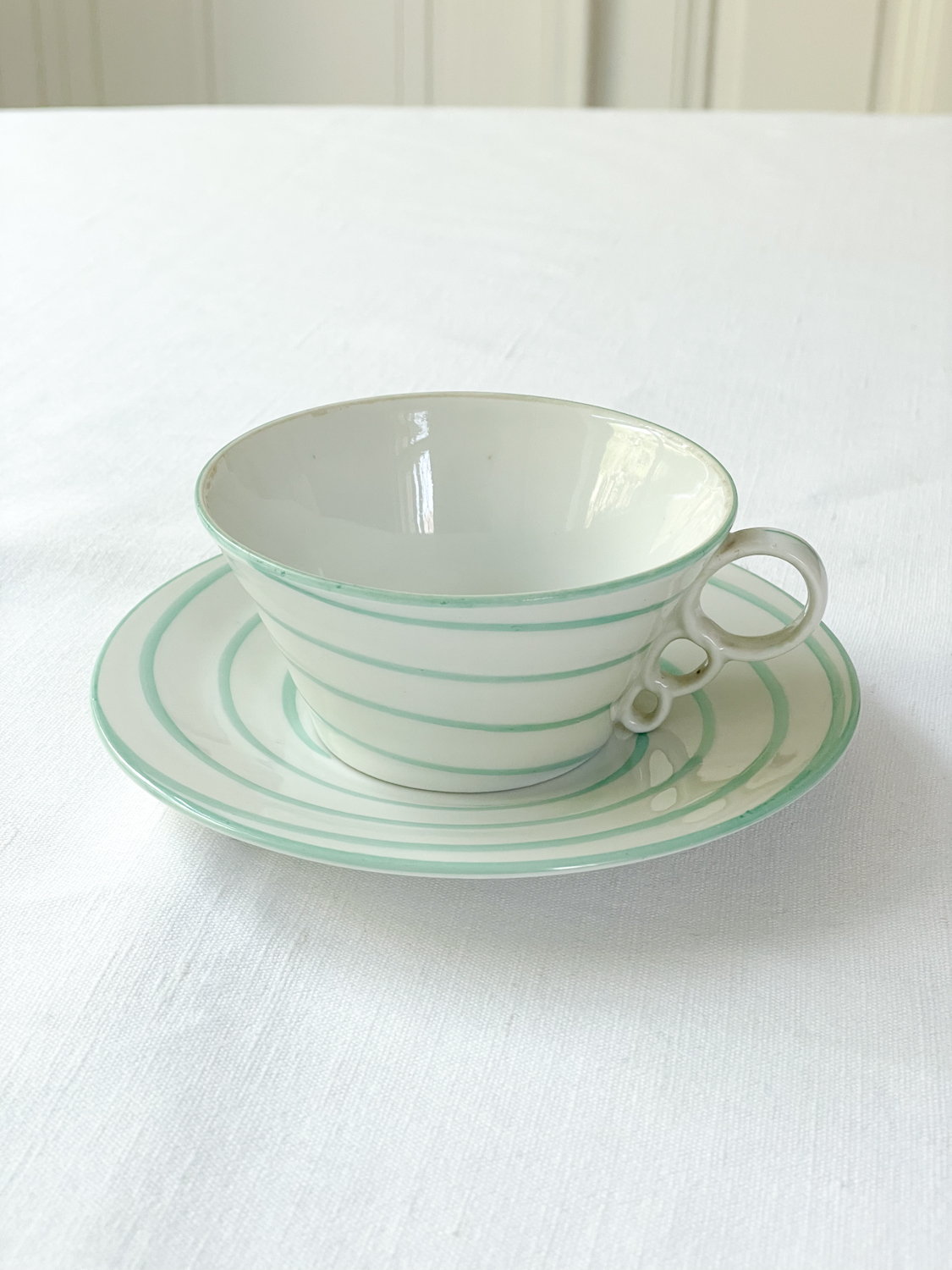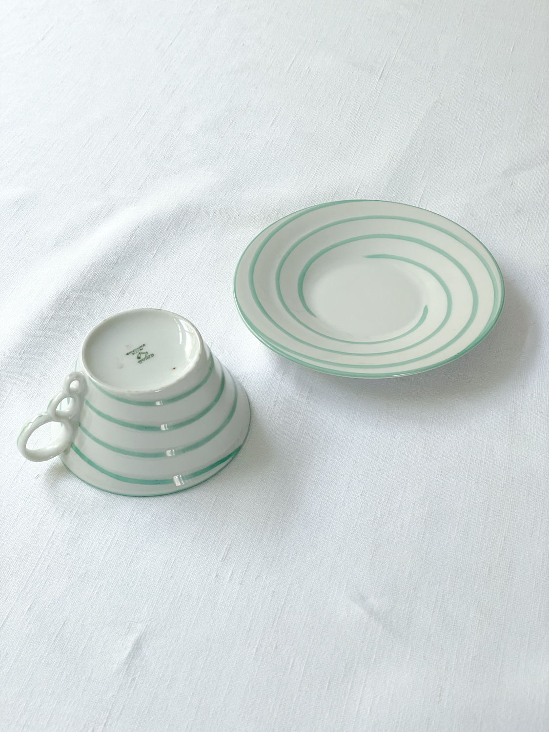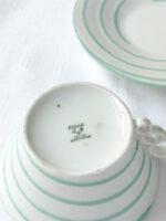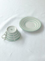 Art deco šálky na čaj s proužkem v mintové barvě od české porcelánky Epiag, která vznikla v roce 1918.