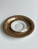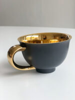 Velký hrnek na čaj s podšálkem od české porcelánky Rudolf Kämpf, která byla založena na přelomu 19. a 20. století za podpory habsburské karlovské dynastie. Továrna byla založena jako elitní dodavatel vysoce uměleckého nádobí, figurek a dalšího porcelánu pro královský dvůr a domácnosti evropské aristokracie. Společnosti se podařilo udržet si své hlavní přednosti i ve 21. století. Je jedinou továrnou v České republice, kde se porcelán vyrábí ručně, což dodává jejím výrobkům na výjimečnosti. Výrobky značky Rudolf Kämpf tvoří většinou limitované série a exkluzivní exempláře.