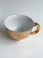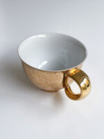 Velký hrnek na čaj s podšálkem od české porcelánky Rudolf Kämpf, která byla založena na přelomu 19. a 20. století za podpory habsburské karlovské dynastie. Továrna byla založena jako elitní dodavatel vysoce uměleckého nádobí, figurek a dalšího porcelánu pro královský dvůr a domácnosti evropské aristokracie. Společnosti se podařilo udržet si své hlavní přednosti i ve 21. století. Je jedinou továrnou v České republice, kde se porcelán vyrábí ručně, což dodává jejím výrobkům na výjimečnosti. Výrobky značky Rudolf Kämpf tvoří většinou limitované série a exkluzivní exempláře.