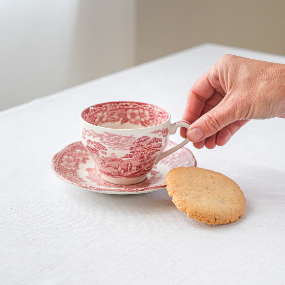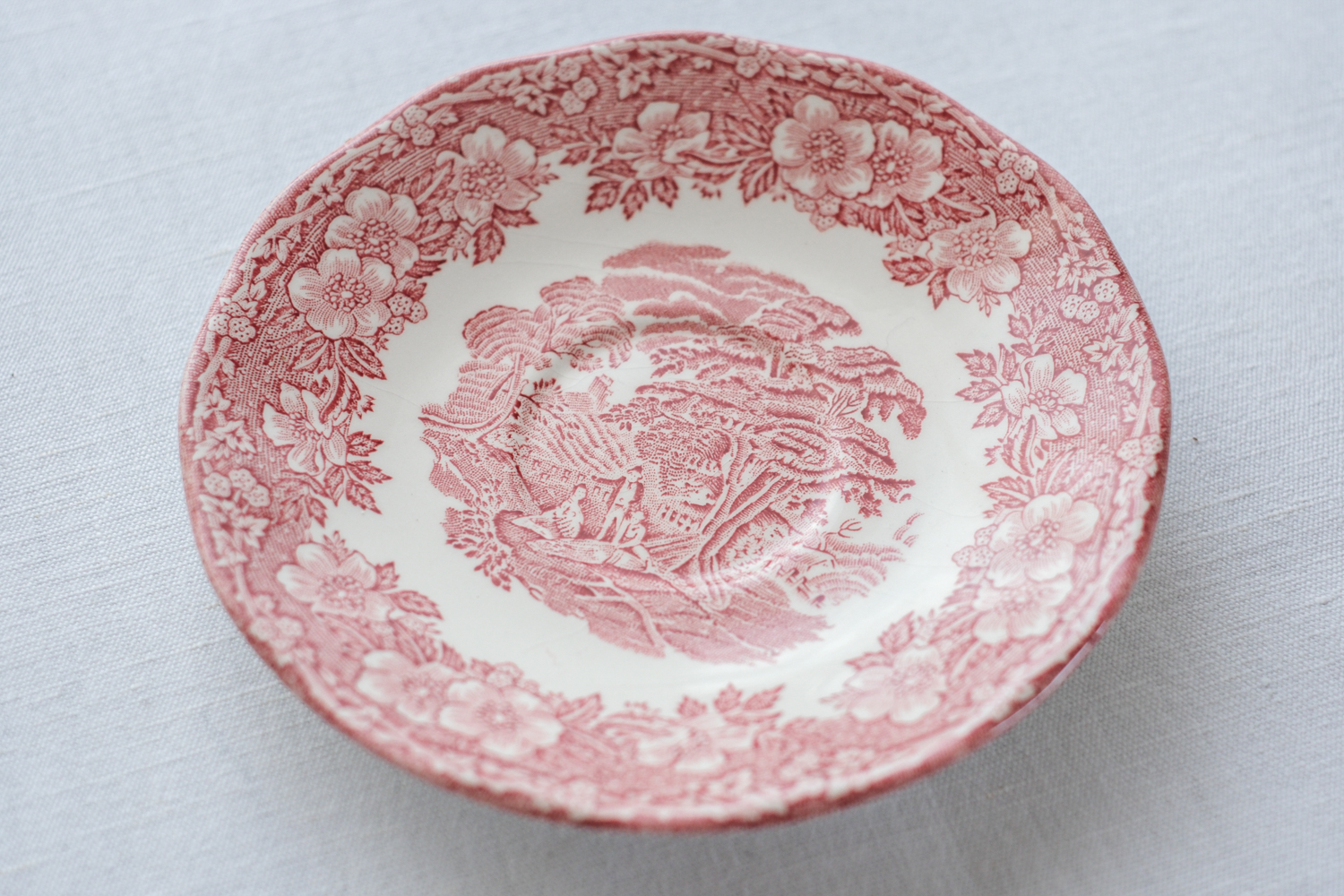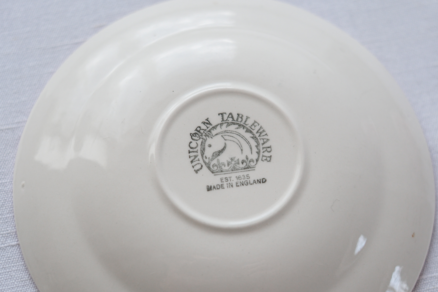 Dezertní talířek od exkluzivní značky Wedgwood z řady „Woodland“ s motivem anglického venkova (ze stejné řady máme i další porcelán). Použity jsou velmi odolné barvy a malba je pod glazurou. Josiah Wedgwood poprvé představil svou krémově zbarvenou keramiku v 60. letech 18. století. Královně Charlotte daroval čajový servis v tomto novém provedení a ona si ho zamilovala natolik, že ho požádala, aby jej nazval „Queen’s Ware“. Toto označení se používá dodnes.
