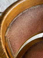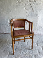 Krásné secesní čalouněné křeslo. Zřejmě vyrobeno firmou Thonet, ale značení jsme nenašly. Ideální do pracovny k psacímu stolu , ale lze dát i do čela stolu jídelního nebo jako solitér se stojací lampou.