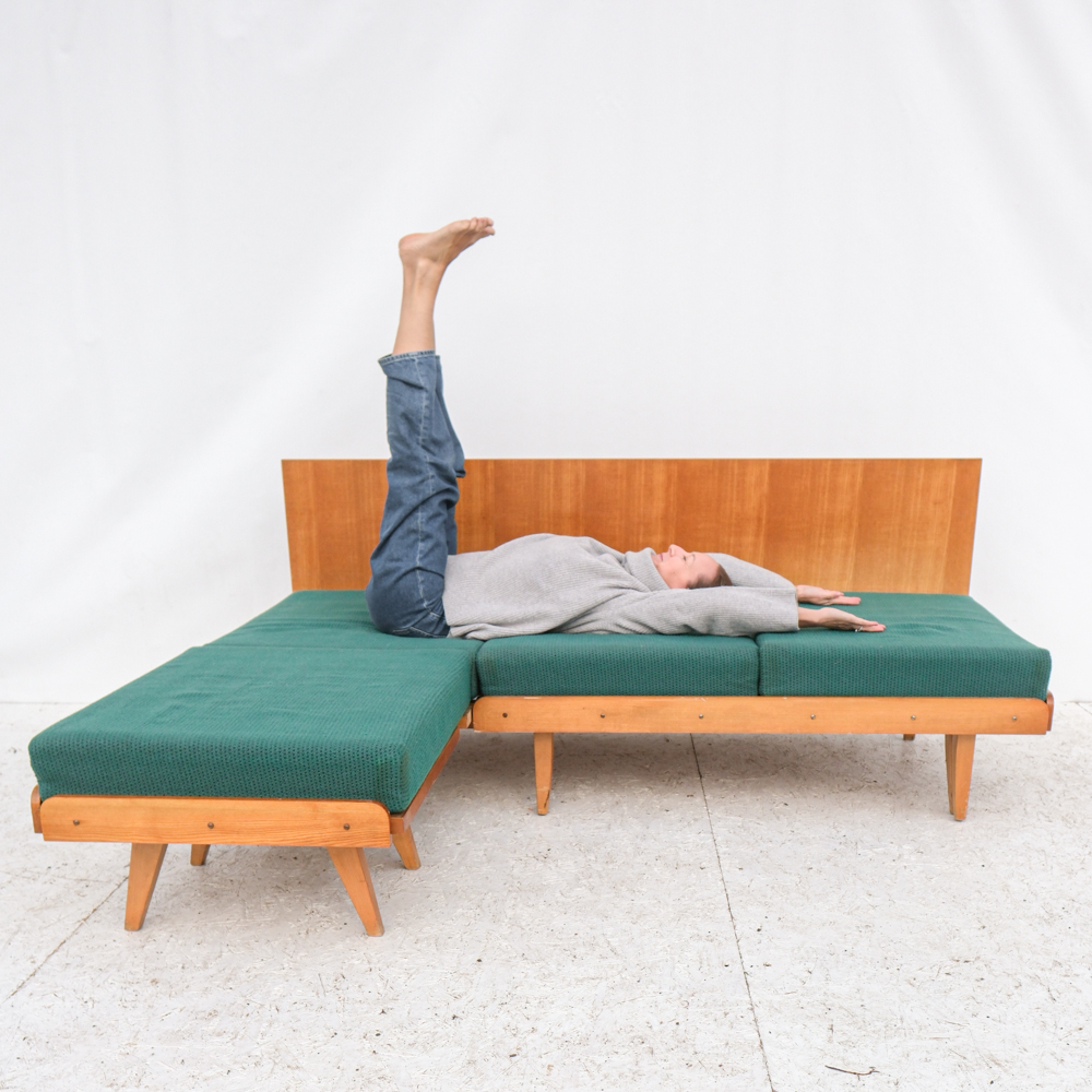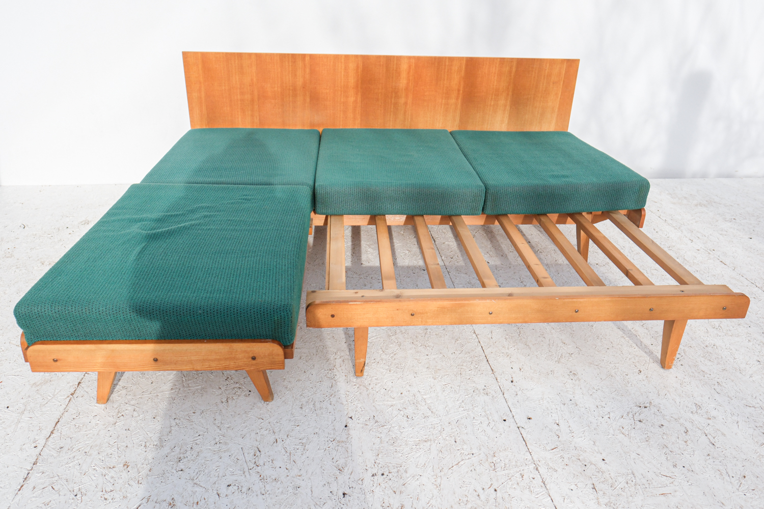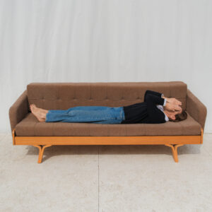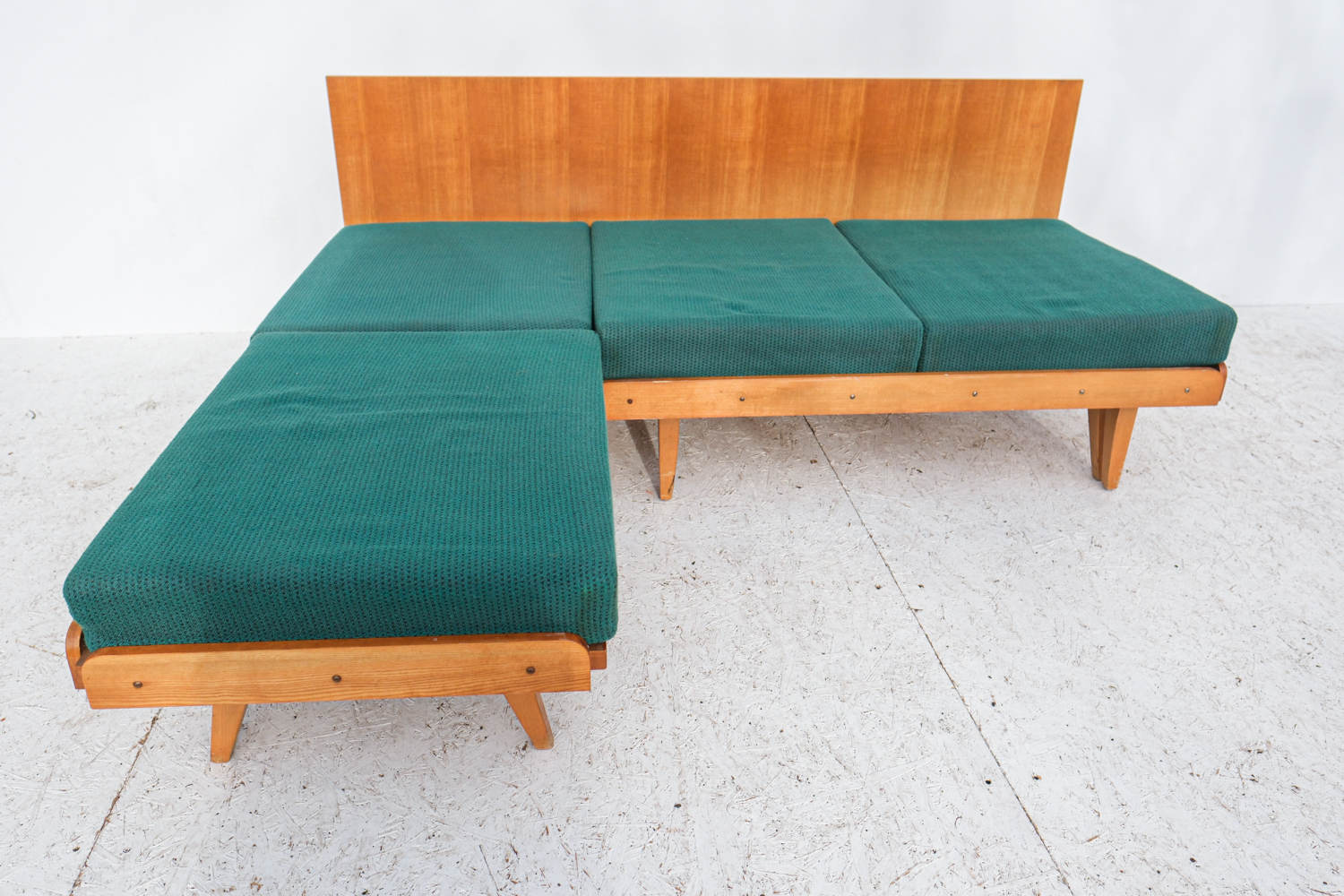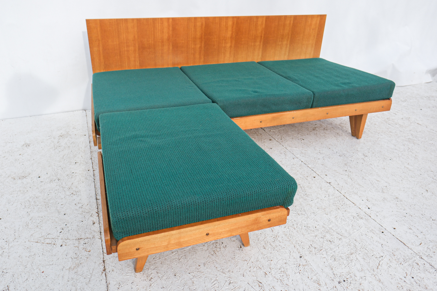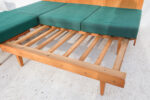 Rozkládací sedačka od návrháře Františka Jiráka pro Tatra nábytok Pravence z 60. let minulého století. František Jirák vystudoval architekturu a stolařskou školu. Mezi lety 1936-48 pracoval pod vedením Jindřicha Halabaly a za svou tvorbu získal řadu ocenění.