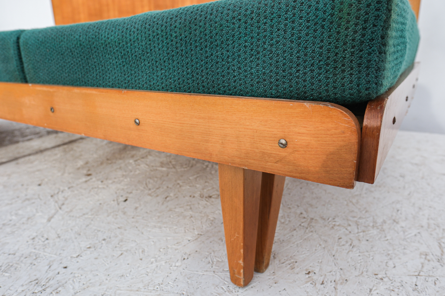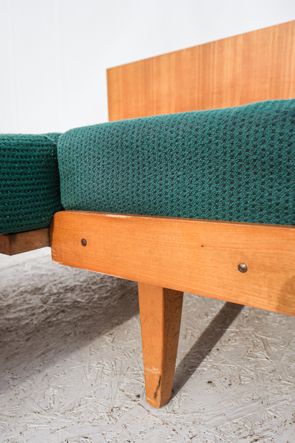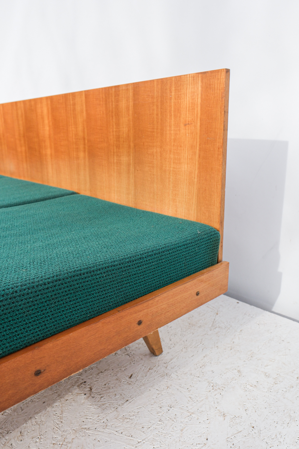 Rozkládací sedačka od návrháře Františka Jiráka pro Tatra nábytok Pravence z 60. let minulého století. František Jirák vystudoval architekturu a stolařskou školu. Mezi lety 1936-48 pracoval pod vedením Jindřicha Halabaly a za svou tvorbu získal řadu ocenění.