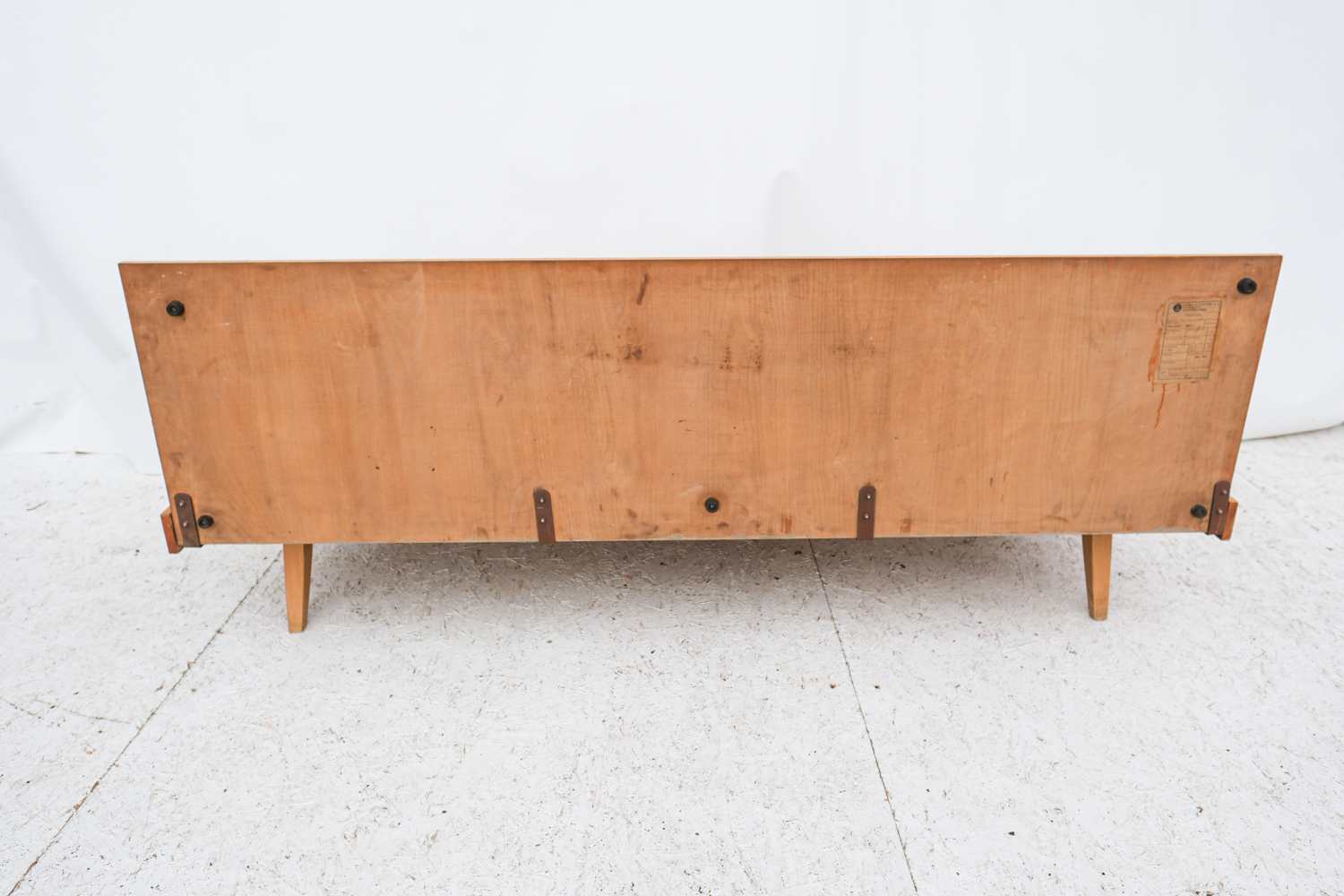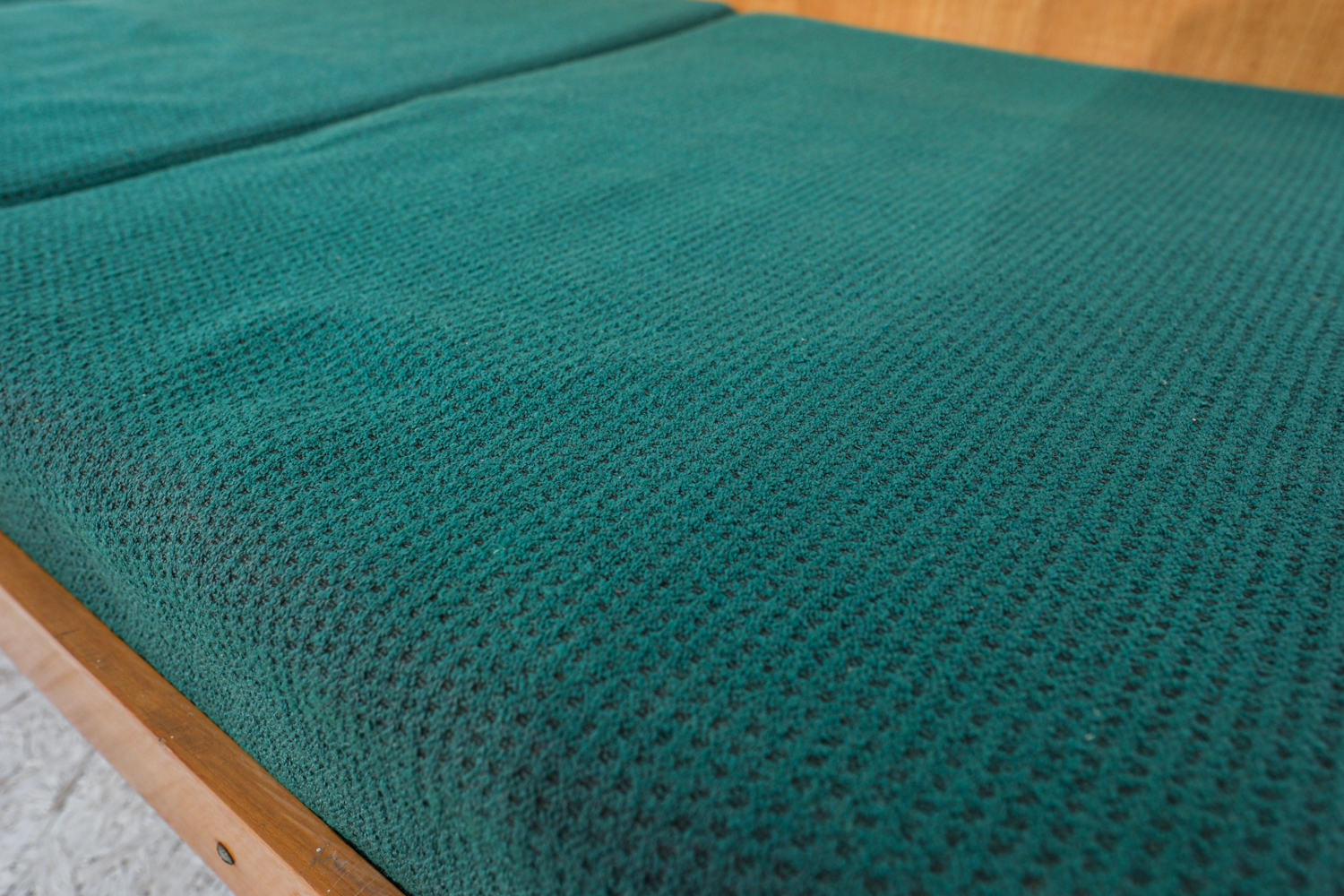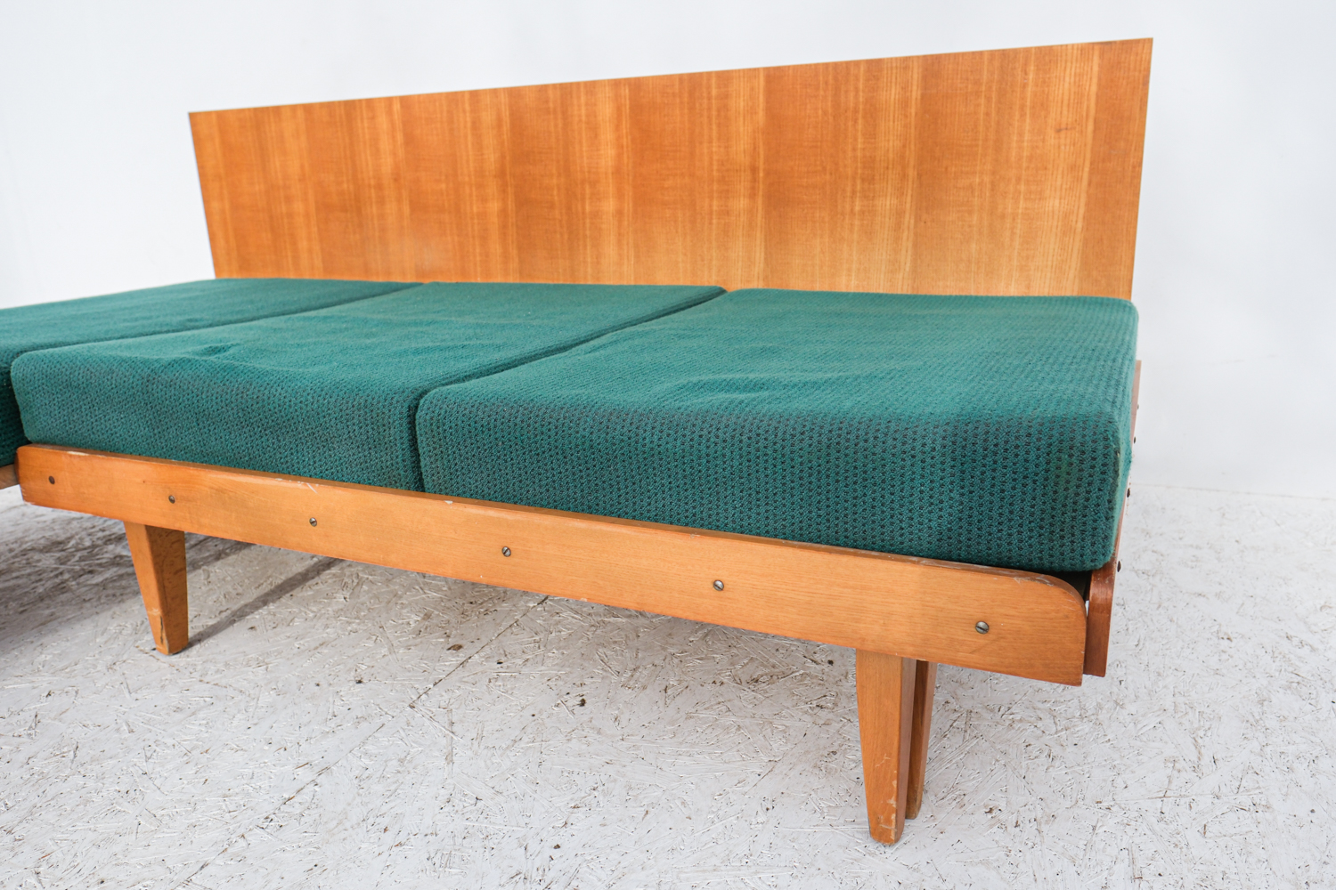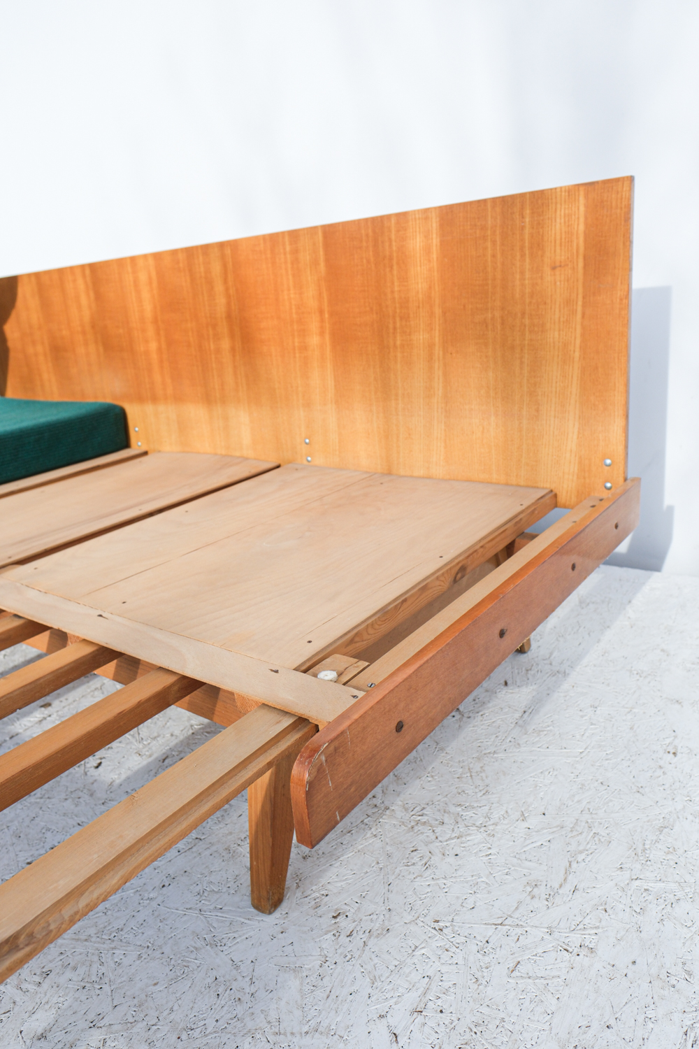 Rozkládací sedačka od návrháře Františka Jiráka pro Tatra nábytok Pravence z 60. let minulého století. František Jirák vystudoval architekturu a stolařskou školu. Mezi lety 1936-48 pracoval pod vedením Jindřicha Halabaly a za svou tvorbu získal řadu ocenění.