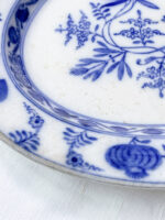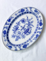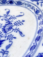 Krásná stará servírovací mísa od světoznáme německé porcelánky Villeroy Boch s cibulákovým vzorem nese výrazné známky používání, ale nikterak ji to neubírá na kráse. Naopak ji to dodává určitý punc vznešenosti. Do sady si k ní můžete dokoupit i sadu dezertních talířků.