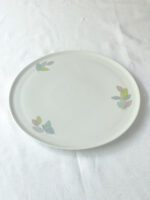 Servírovací tác je díky svému plochému tvaru vhodný na dort, ovocný koláč i drobné pochutiny. Je od německé porcelánky Arzberg a z jeho jednoduchosti ho vytrhují pouze hromádky listí v pastelových barvách.