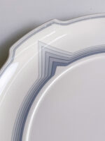 Servírovací tác vhodný na drobné sladké či slané pohoštění, který svým dekorem v odstínech šedo-modré evokuje art deco styl.