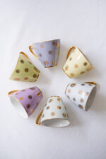 Šest šálků s podšálky v nyní tolik žádaném bruselském stylu odvozeném od fascinující světové výstavy Expo 58 v Bruselu, na níž československá expozice zazářila. Lze jej označit jako měkký modernismus, v němž se výrazně uplatňuje výtvarno.Tyto šálky (mintová, fialová, fialkovo-růžová, vanilková, zelankavá, světlince šedá) reprezentují pro bruselský styl tipické pastelové barvy.