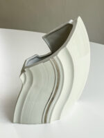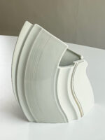 Zajímavě tvarovaná váza od prof. ak. soch. Václav Šeráka. Jeho produkty mají dynamický tvar a velkorysé proporce, což je vidět i na této váze.